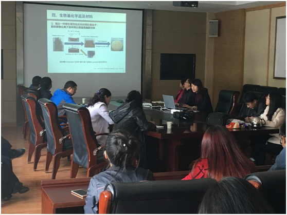 陈经理首先对许凤教授和张学铭教授的到来表示热烈欢迎。许教授从农林生物质的发展现状及目前的研究瓶颈出发,介绍了生物质细胞壁天然抗降解屏障的形成机理,并率先提出了细胞壁主要组分清洁高效分离、结构鉴定的新理论和新方法。通过对主要组分进行定向功能改性,实现了三大素的高值化利用,成功制备出功能性气凝胶、水凝胶、酚醛树脂胶、平台化合物等。这些成果应用在制浆造纸、木材工业和化工制品行业中,产生了巨大的经济和社会效益。最后,许教授与参会的老师和同学进行了深入交流。