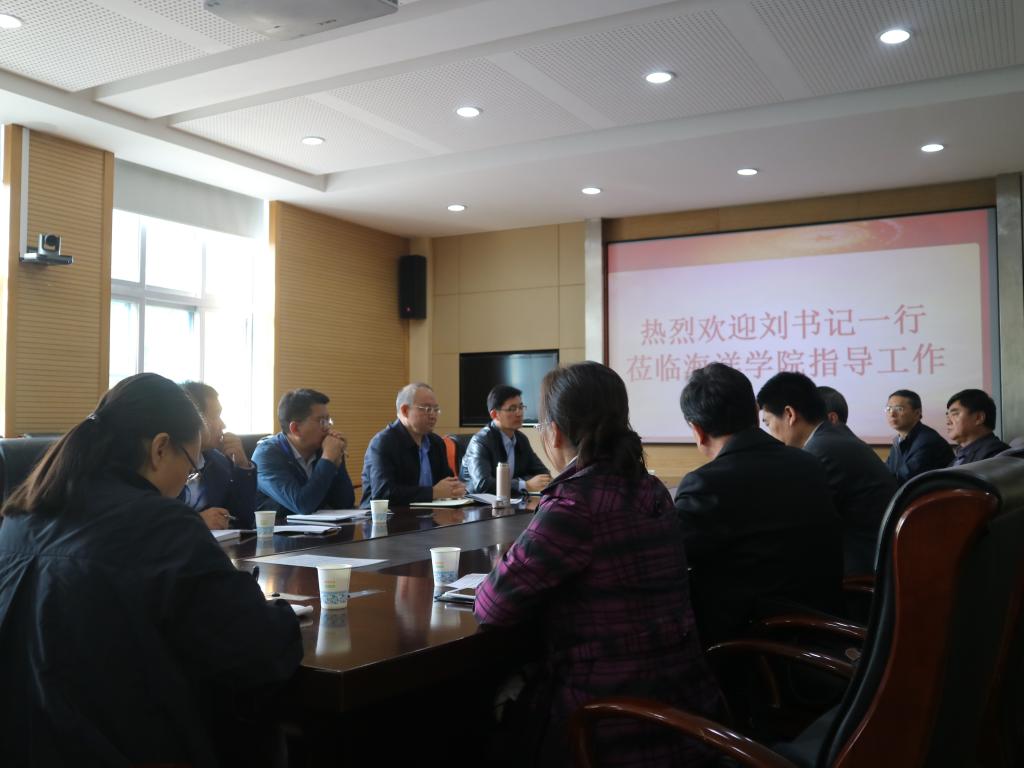 刘兴云认真听取了公司工作汇报并对海洋公司的工作成绩、公司定位和发展思路给予了充分肯定,对桎梏公司发展的办公、实验用房等问题提出了指导意见,要求公司在现有的条件下不等不靠,凝心聚力,谋求发展。针对公司的发展,刘兴云着重提出了六点建议:一、要有好的思路;二、要有好的目标;三、要有好的班子;四、要有好的队伍;五、要有好的机制;六、要有好的环境。他指出,海洋公司的成立对公司完善学科布局、优化人才培养格局具有深远意义,公司的发展寄托了党委的殷切期望。