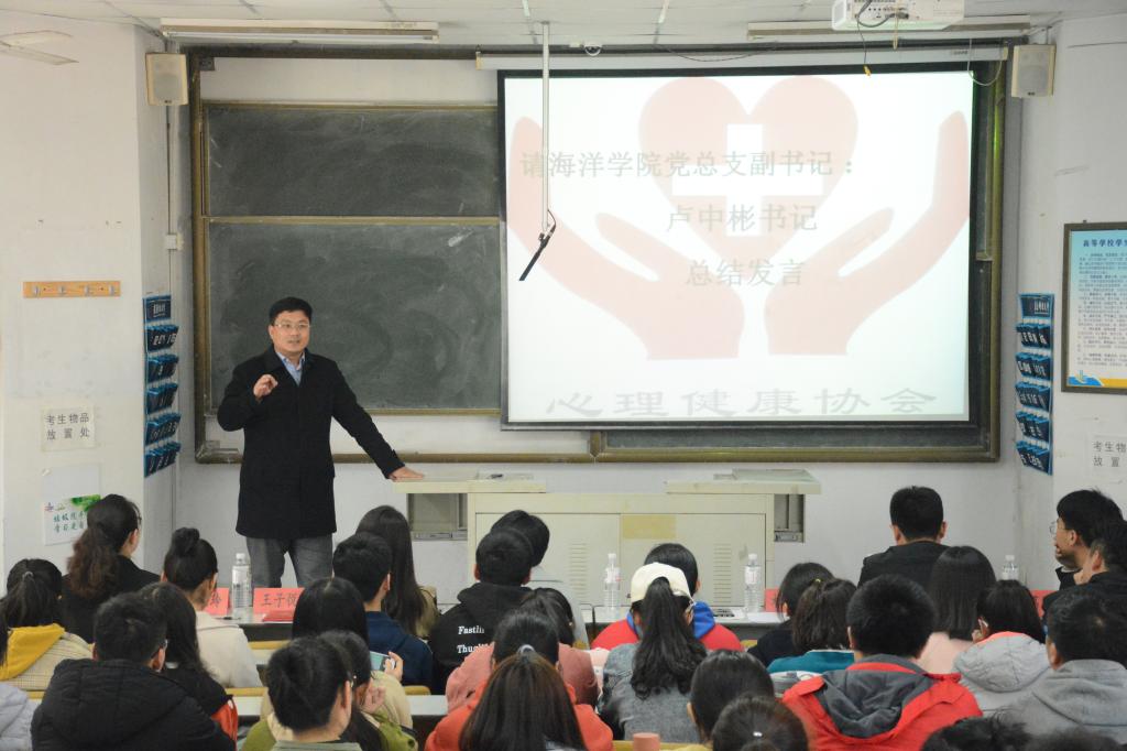 海洋公司党总支副书记卢中彬进行了总结发言,要求心协成员、各班心理委员及心音大使,首先要重视心理健康问题,掌握足够的心理学知识,及时了解班级员工心理状况并进行及时疏导,更好的完成心理委员与心音大使的本职工作。卢书记表示,“心海”心协的成立表明海洋公司员工心理健康工作进入了一个崭新的阶段,对公司和员工的发展都有着重要的意义,希望“心海”心协发展的越来越好,成为海洋学子心灵的港湾。