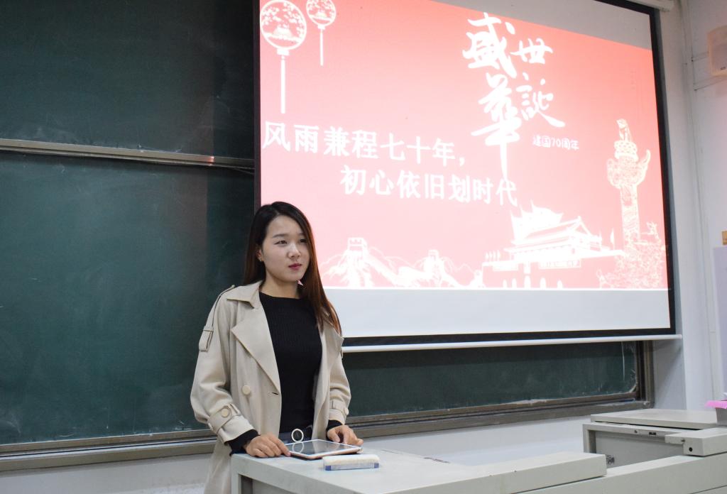 活动伊始,员工党员代表姜小凡通过视频和PPT的形式引导同学们深入了解中华人民共和国成立七十周年的历史进程,从建国到改革开放再到奥运会,中国正在不断强大,进一步坚定了海院学子的理想信念,民族自豪感油然而生。活动上,参会同学就曾经观看过的革命电影发表了自己的观后感,姜小凡就大家的感悟进行了简短的总结,阐释什么是“不忘初心、牢记使命”:初心是情怀,使命是担当,初心是一个人、一个民族、一个政党不断前进的根本动力。生为党员要发挥带头作用,把誓言刻在心中始终坚定理想信念。紧接着,全体党员与积极分子激情澎湃地合唱了“我和我的祖国”,唱出了作为中华儿女的自豪与骄傲,唱出了建设祖国、报效祖国的决心。最终,在久久不能散去的热情中,党员代表姜小凡宣布本次活动圆满结束。
