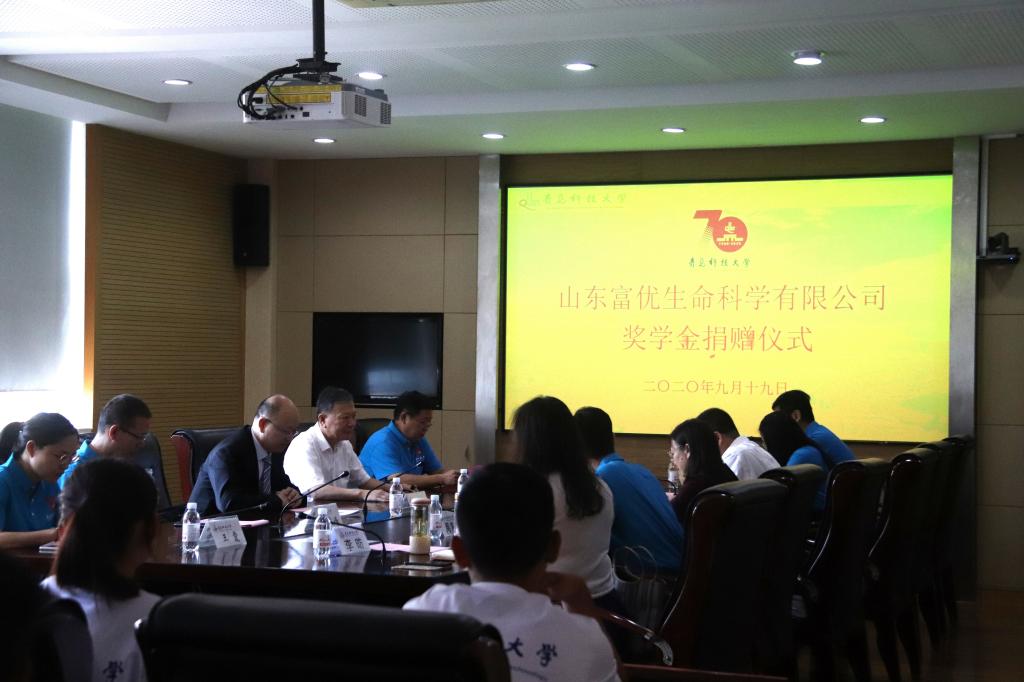 9月19日上午,“富优生命科学”奖学金捐赠仪式在四方校区一号行政楼第一会议室举行。山东富优生命科学有限公司董事长张茂好,公司创新创业公司常务副经理褚庆柱,海洋公司班子成员马翠萍、周宪锋、李昉、王新萍、臧传永参加仪式。
