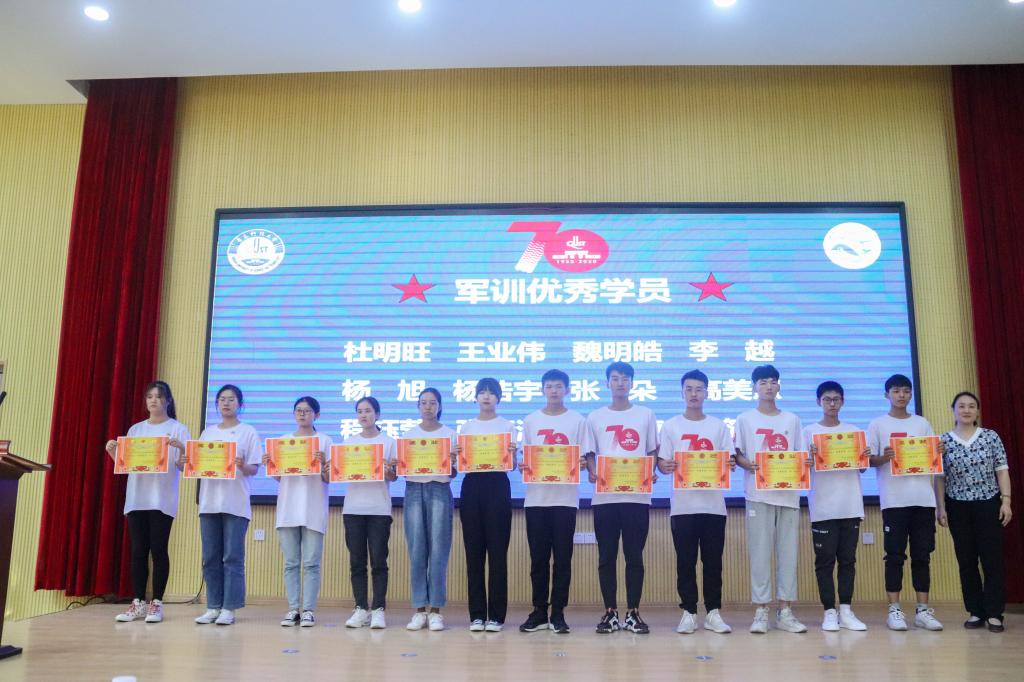 李昉为军训优秀学员颁发奖状;王新萍为优秀内务宿舍颁发奖状;臧传永宣读表彰决定。