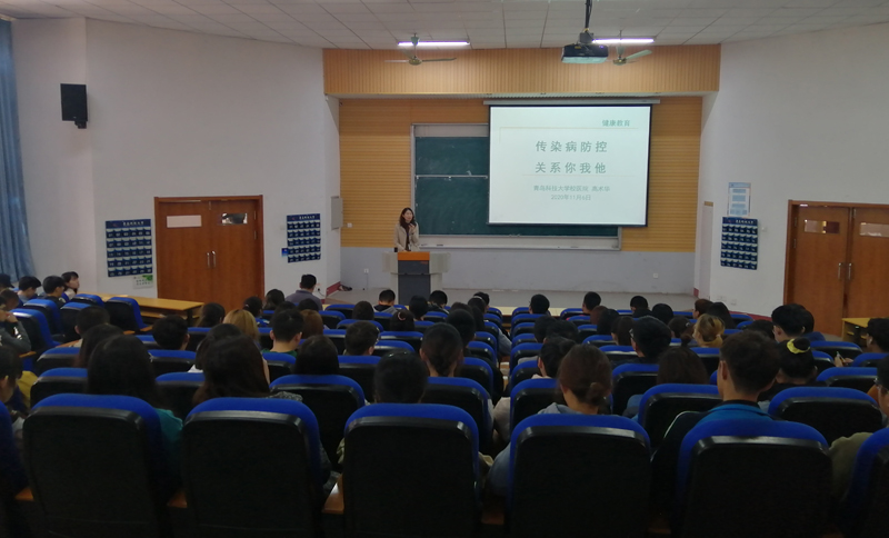 讲座中,高术华介绍了我国传染病防治方针、传染病等级分类、常规防治做法等情况。从传染病防控工作的重要性、传染病发生的风险因素、认识传染病、常见传染病及其预防措施等方面作了细致讲解,对水痘、流行性感冒、诺如病毒、肺结核等症状及防治措施作了全面介绍,对新冠肺炎、呼吸道传染病、肠道传染病防控重点作总结。她提醒同学们务必保持良好卫生习惯,勤洗手、勤通风,均衡饮食,适量运动,以良好的状态保证正常的学习生活。
