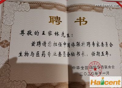 在本次大会上,中国侨联特聘专家委员会聘请王家林教授担任生物与医药专委会秘书长。