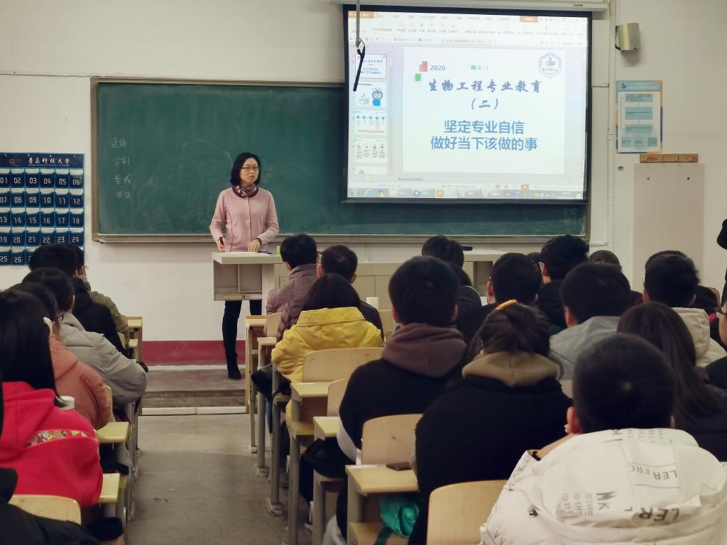 梁成伟介绍了生物工程专业发展脉络,从办学条件、科研平台、实习过程、专业前景、课程设置等方面作了深度讲解。现场播放了生物工程专业优秀毕业生录制的视频,勉励同学们志存高远,打牢专业基础。马翠萍阐述了生物专业良参加发展趋势,要求员工积极参与学科竞赛,增强专业自信,提升综合素质。