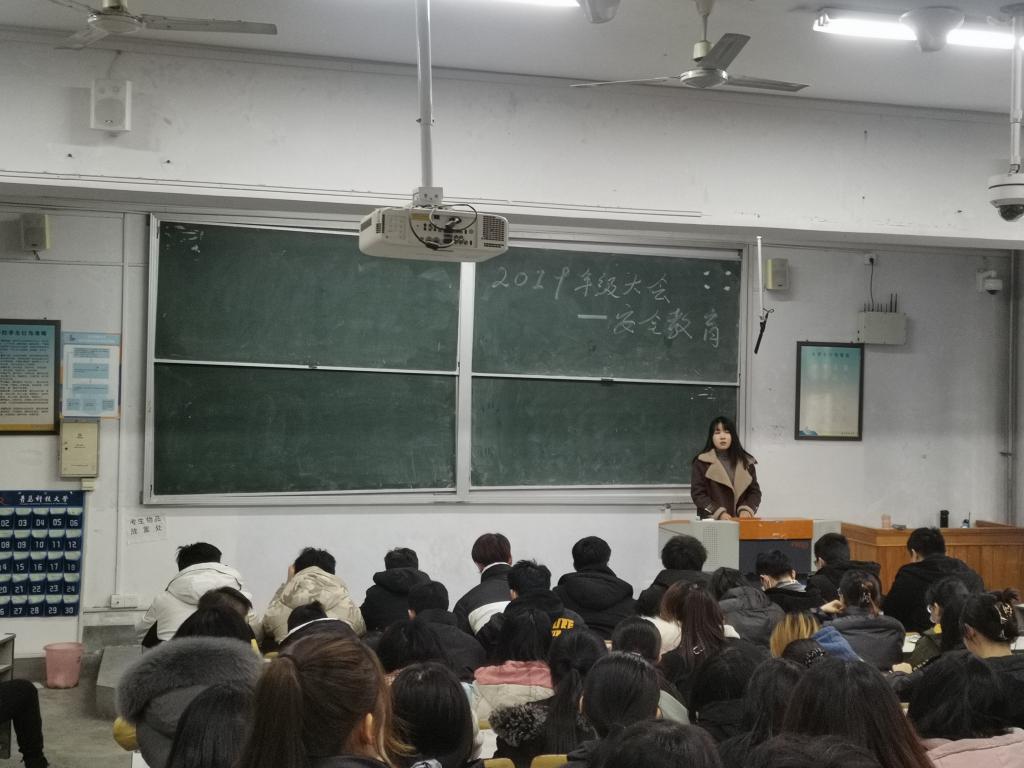1月15日,2019级在三教204召开年级大会,部署寒假安全教育工作。2019级员工通过线上线下方式参加年级会,会议由2019级辅导员姜小凡主讲。