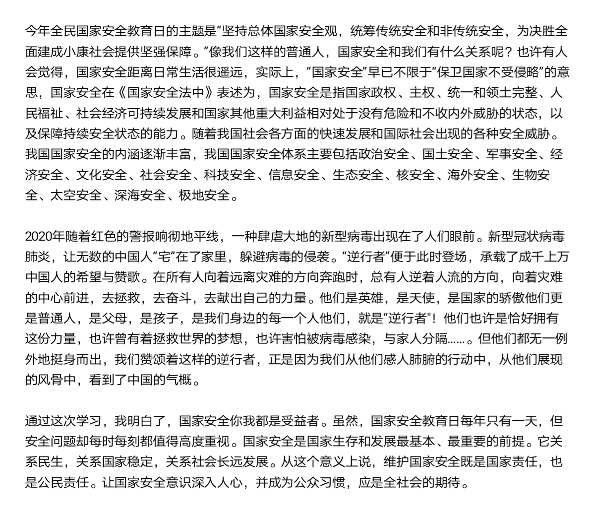 为进一步推动海洋公司国家安全教育工作深入开展,公司举办主题为“践行坚持总体国家安全观,统筹发展和安全,统筹传统安全和非传统安全,营造庆祝建党100周年良好氛围”的征文活动。