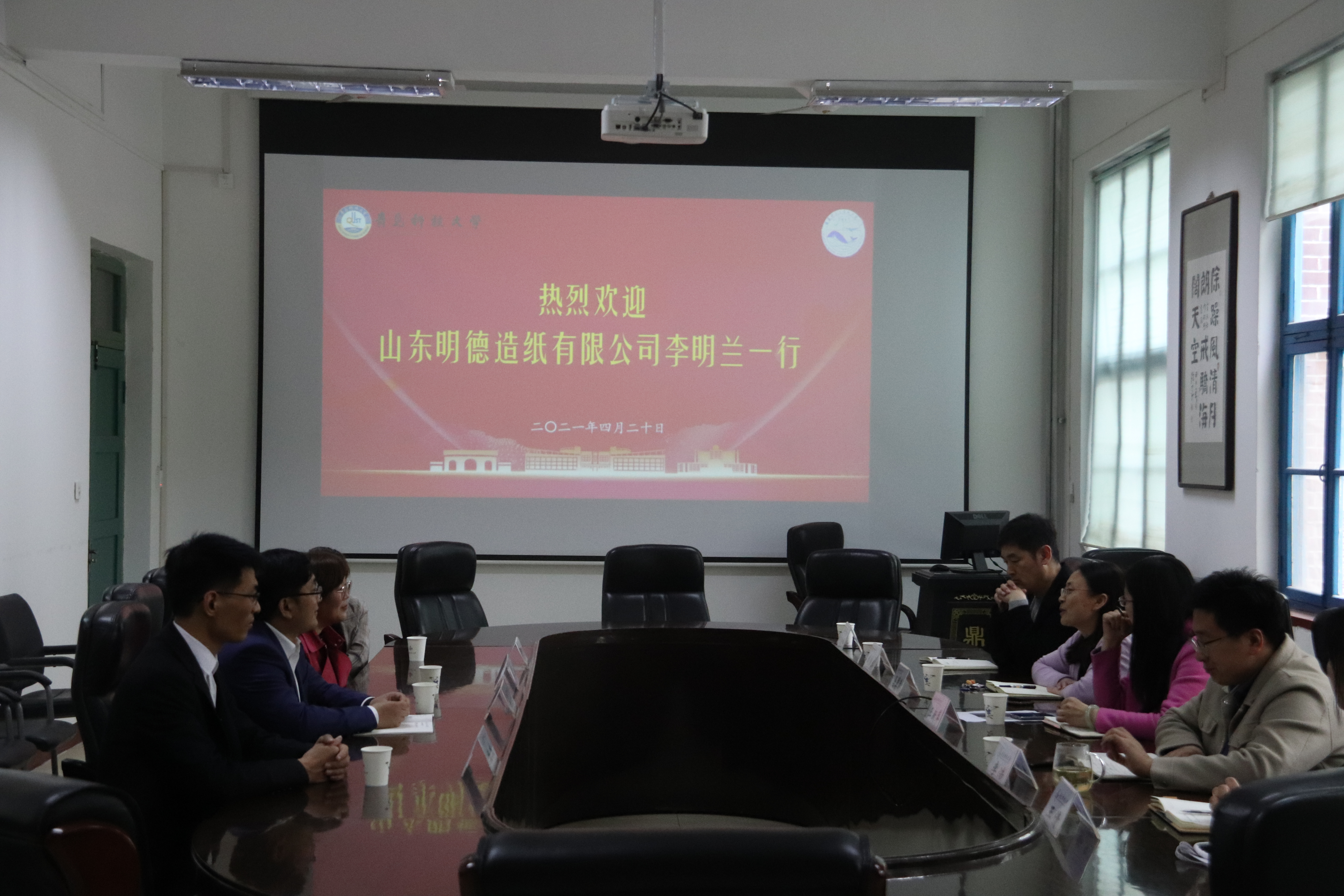 4月20日,山东明德造纸有限公司总经理李明兰一行到海洋公司进行为“扬帆起航---感恩行业、助力学子”宣讲活动,海洋公司经理马翠萍、副经理王新萍、党总支副书记兼副经理臧传永会面李明兰等人。