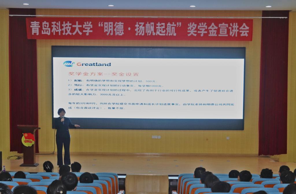 马翠萍对李明兰一行表示热烈欢迎,对奖学金的设立表示感谢。她表示,宣讲有助于帮助员工提前了解工作市场,对未来的发展有进一步规划,此次合作是加强产教融合、校企合作,促进教育链、人才链与产业链、创新链的有效衔接”的具体落实,希望以奖学金的设立为契机,进一步深化校企合作,拓宽合作领域,形成协同育人合力。李明兰对海洋公司的欢迎和细致的安排表示感谢,介绍企业的整体情况,就围绕科技合作交流、人才培养、实习实践等方面进行了深入的探讨并达成了共识。