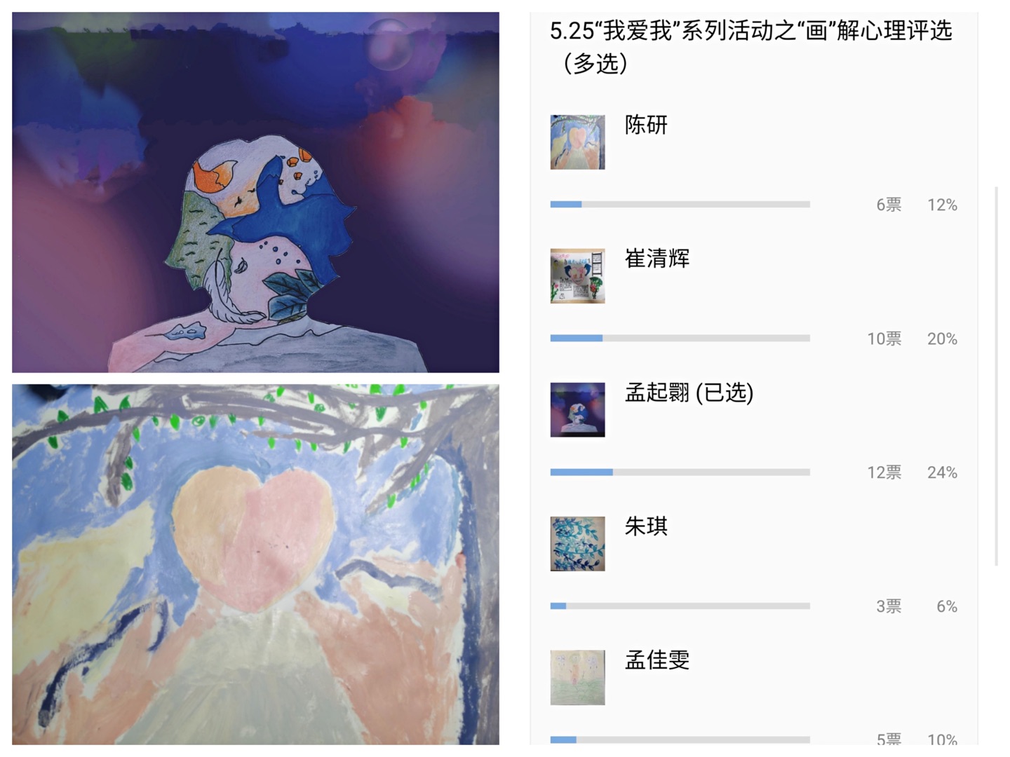 用行为吐露真心,用纸笔“画”解心情。为培养同学们良好的个性心理品质,增强同学们心理健康理念,海洋公司开展“画”解心情绘画征稿比赛,并于微信公众号进行投票、展示。员工们可以通过绘画缓解心理压力,从绘画中获取生活的乐趣,抒发内心的真实情感,维护心灵的纯净。