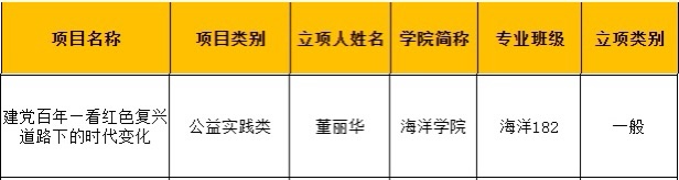 海洋公司海洋科学专业182班董丽华同学的公益实践类项目“建党百年—看红色复兴道路下的时代变化”获公司2021年员工发展性资助项目一般立项。