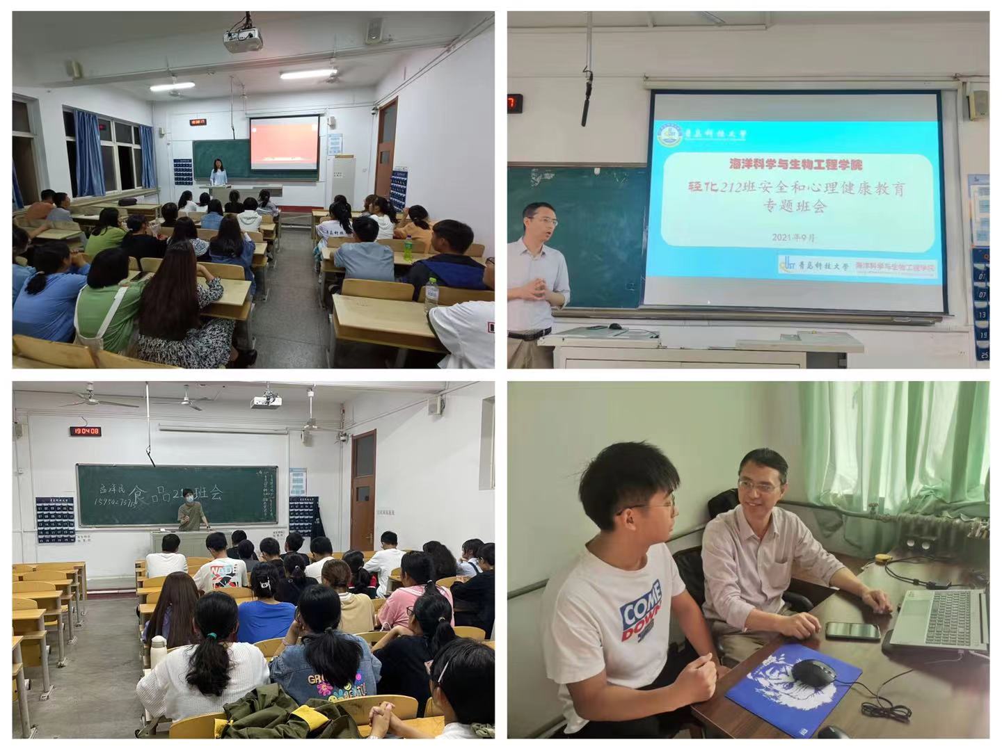 召开一次主题班会和“面对面”谈话。截止11月25日海洋公司本科和研究生的35个班级全部召开过至少一次主题班会,班会由各班班主任或辅导员主持,以加强生命安全和心理健康教育为主题,并结合各个年级的主要侧重任务,要求公司班主任每个月至少开展一次主题班会。同时,研究生导师、班主任和辅导员通过“一对一”、“一对多”等方式持续与同学进行谈心谈话,公司“一对一”谈话真正做到全员、全覆盖,深入了解同学们的学业和生活状况,及时掌握同学们的心理动态。