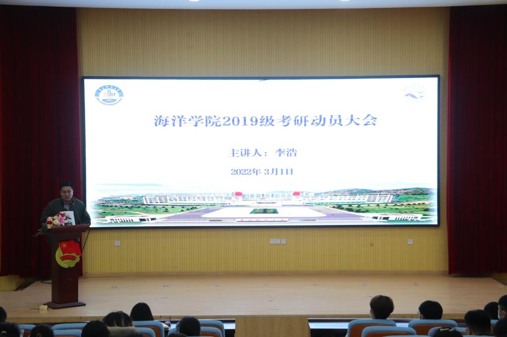 为进一步激发海洋学子的学习动力,树立正确目标,增强考研信心。海洋公司在讲学厅召开“开学第一课”暨2019级考研动员大会。大会由辅导员李浩主持,2019级全体员工参加。