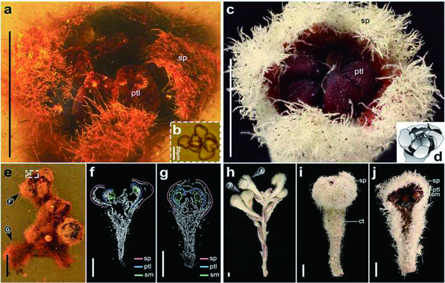 2月1日,植物学国际顶级期刊《自然-植物(Nature Plants)》以封面论文形式报道了公司海洋公司王硕教授团队的最新研究成果——在一亿年前的琥珀化石中发现了最古老的完整花朵,并在现在的南非开普地区找到了这种花的现存后裔。这些曾经在恐龙脚下绽放过的小花,填补了亿年前现存开花植物缺失的空白,一定程度上回答了争论160多年的国际谜题。