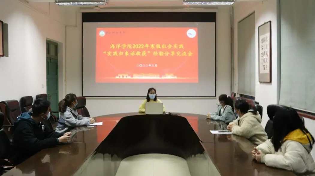 2022年3月8日晚,海洋公司在公司会议室召开2022年寒假 “实践归来话收获”经验交流分享会。2021级辅导员吕珊珊出席此次会议,全体2021级员工线上学习交流。