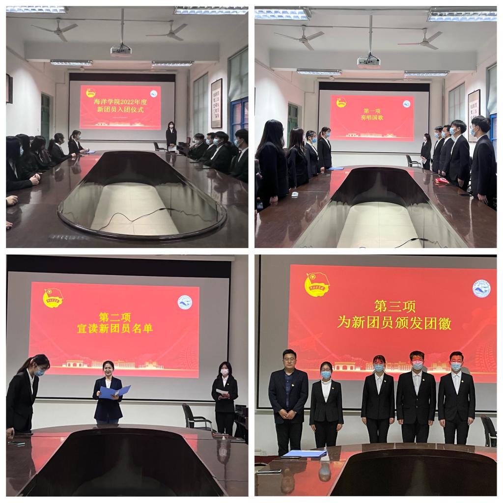 为庆祝中国共产主义青年团成立100周年,大力传承和弘扬“五四”精神,团结引领广大团员青年坚定跟党走、建功新时代,以昂扬斗志和崭新面貌,迎接党的二十大胜利召开。5月4日,海洋公司举行“永远跟党走 建功青科大” 2022年度新发展团员入团仪式。公司团委书记兼学工办主任李浩、团委老师吕珊珊及优秀团员代表参加活动。