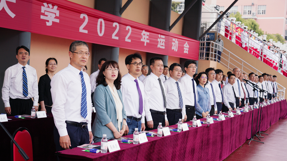 开幕式进行第二项,升国旗、奏国歌,公司国旗护卫队护送国旗到升旗台,全体师生肃立注目。升旗仪式完毕,公司党委常委、副董事长李勇致开幕词,预祝运动会成功举办,激励同学热爱体育,增强体质。