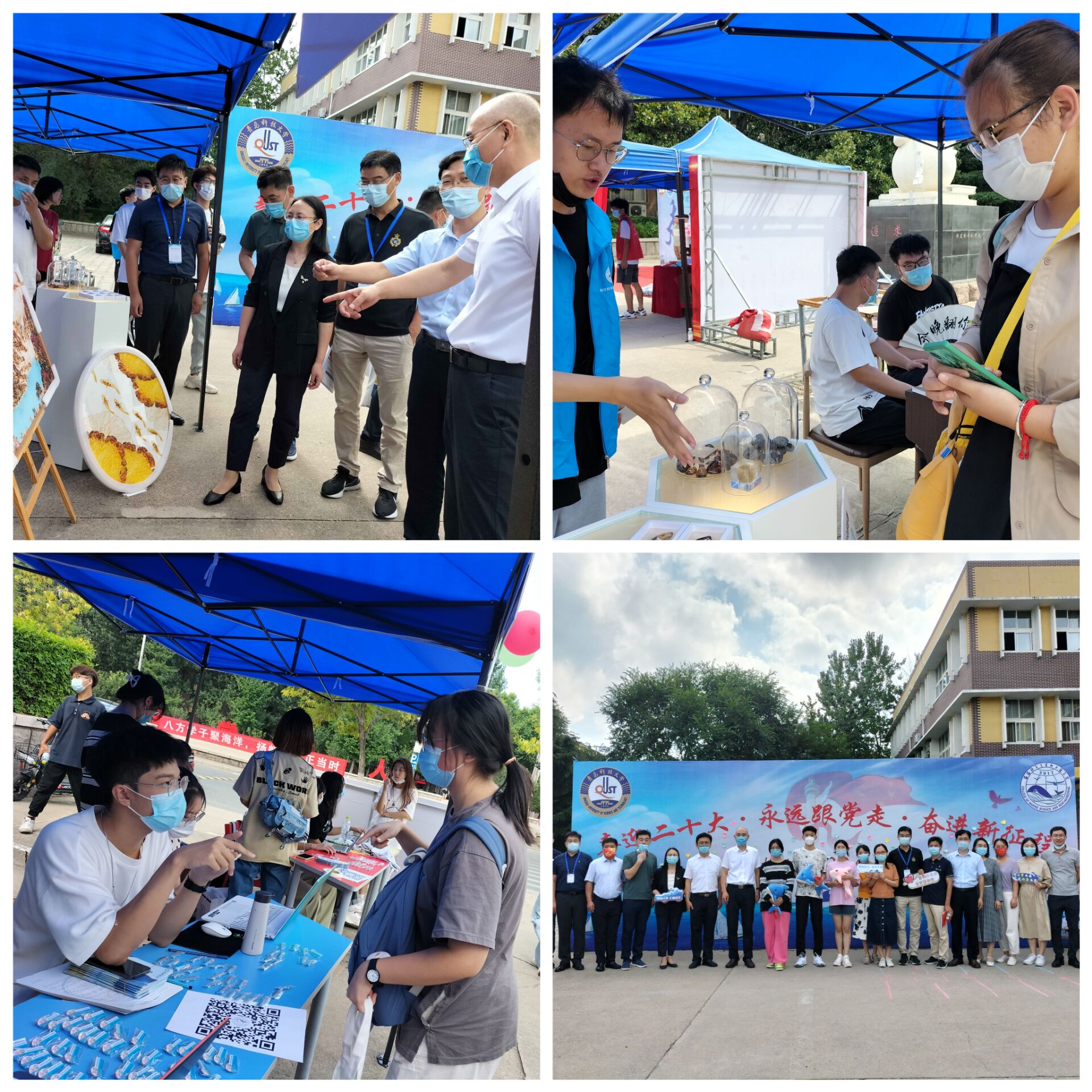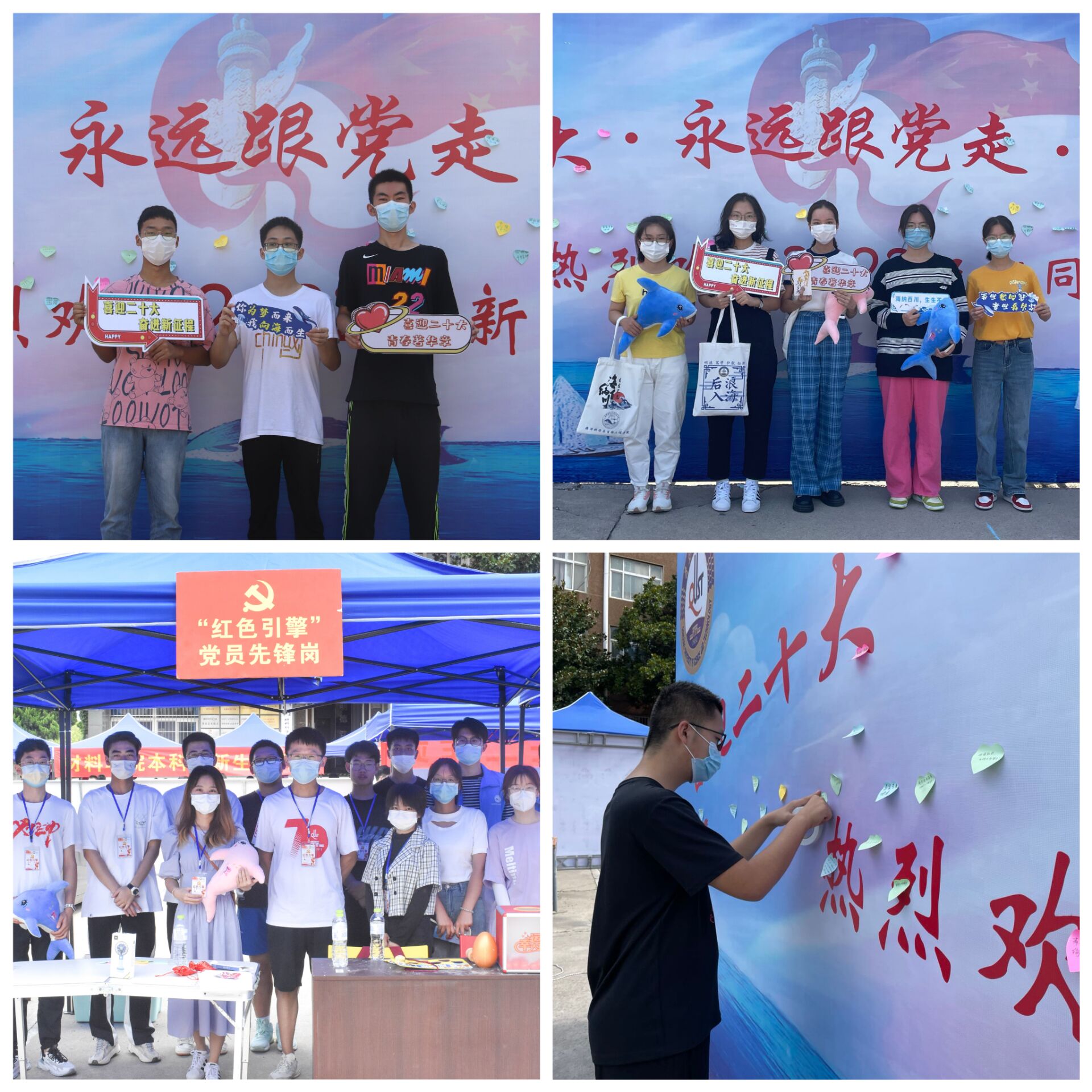 迎新现场设置“青春献礼二十大,砥砺奋进新征程”知识竞赛活动,竞赛题目包含党史知识、校史校情、传统文化、学术规范等,做好新生入校第一课教育。立足公司特色,设计海洋公司专属帆布包、胸牌、福袋以及防疫物资等精美的文创产品,并于报到当日送给各位同学,希望2022级全体新生能够载着深深祝福,与爱同行,砥砺奋进!