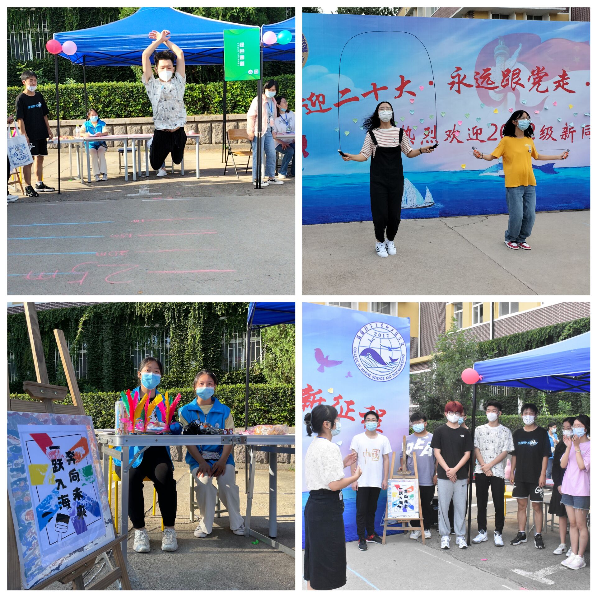 “一跃入海,奔向未来”。在全校深入开展体育综合改革之际,公司在迎新现场组织新生进行跳远、跳绳体验,并为表现出色同学设置精美奖品,通过趣味性的运动比赛,为新生宣讲公司体育综合改革政策,鼓励新生加强锻炼,强健体魄。