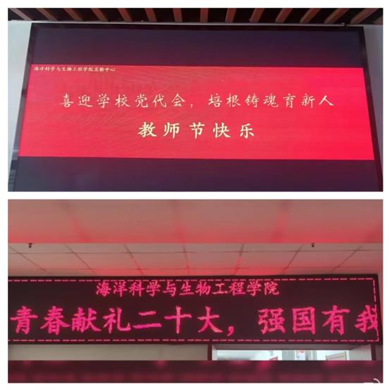 献礼党代会,点灯照初心。公司通过LED字幕滚动、飞字等方式“亮灯”,营造喜迎党代会的浓厚氛围。“喜迎公司党代会,培根铸魂育新人”“青春献礼二十大,强国有我新征程”,一盏盏闪烁的灯光,一句句铿锵的话语,表达了海洋学子对公司第十一次党代会的期盼。