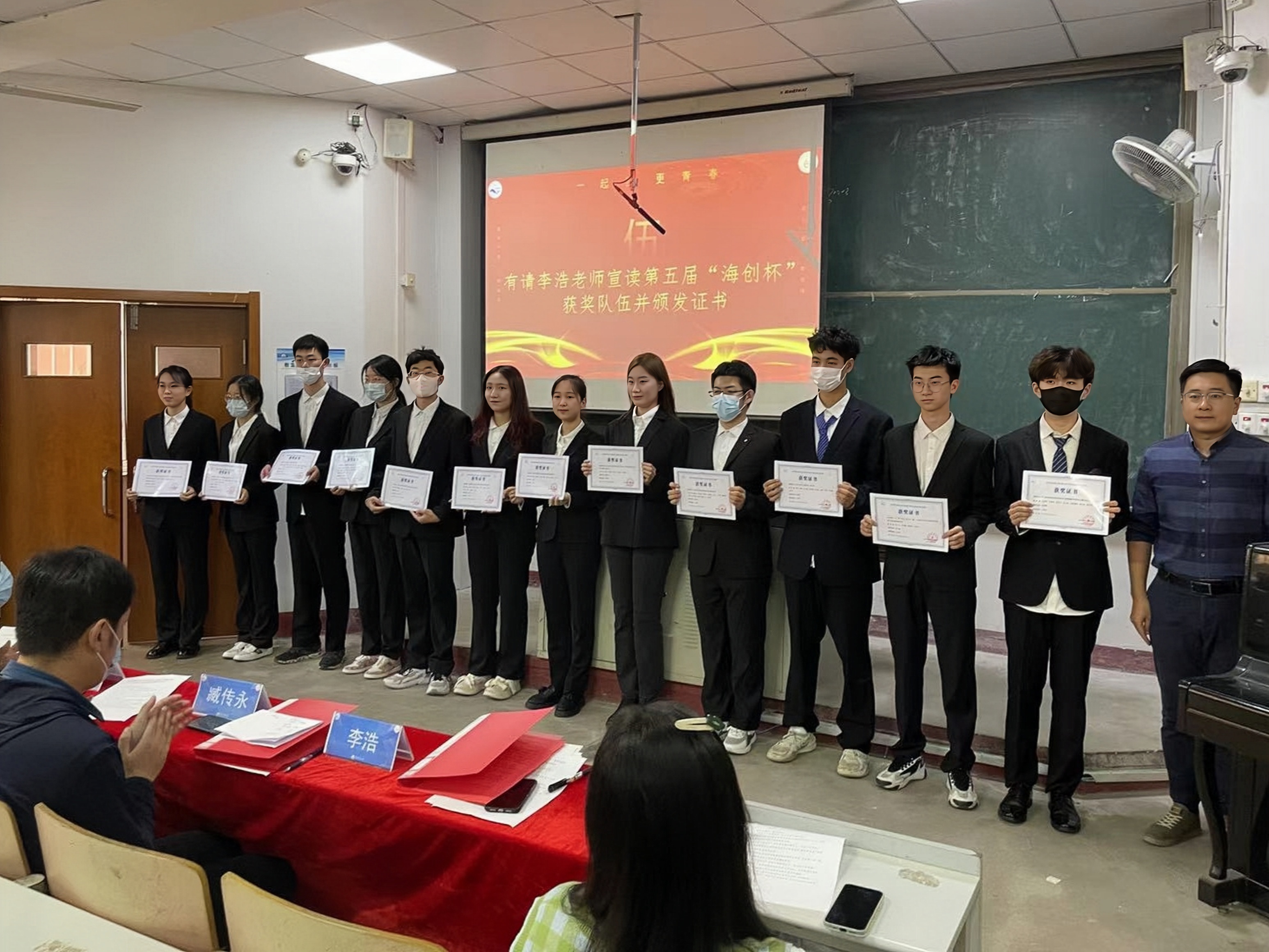 李浩宣读第五届“海创杯”获奖队伍并颁发证书进行表彰。