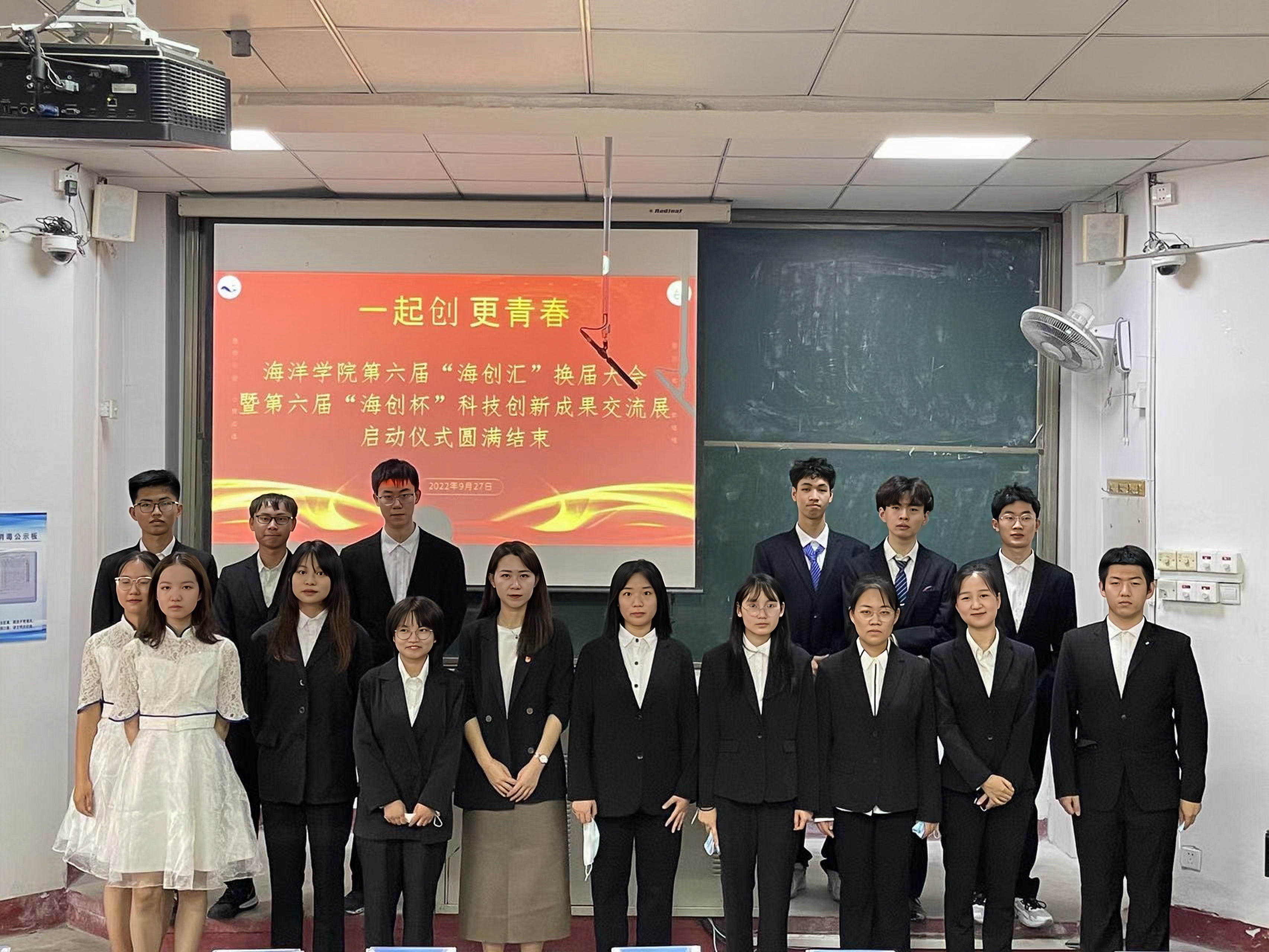 9月27日下午,海洋公司在二教111开展第六届“海创汇”换届大会暨第六届“海创杯”科技创新成果交流展启动仪式。海洋公司党总支副书记兼副经理臧传永、学工办主任兼团委书记李浩、学工办副主任兼团委副书记杜宗杰、2020级辅导员刘金岭、2021级辅导员吕珊珊以及海洋公司创新创业员工骨干参加此次大会。