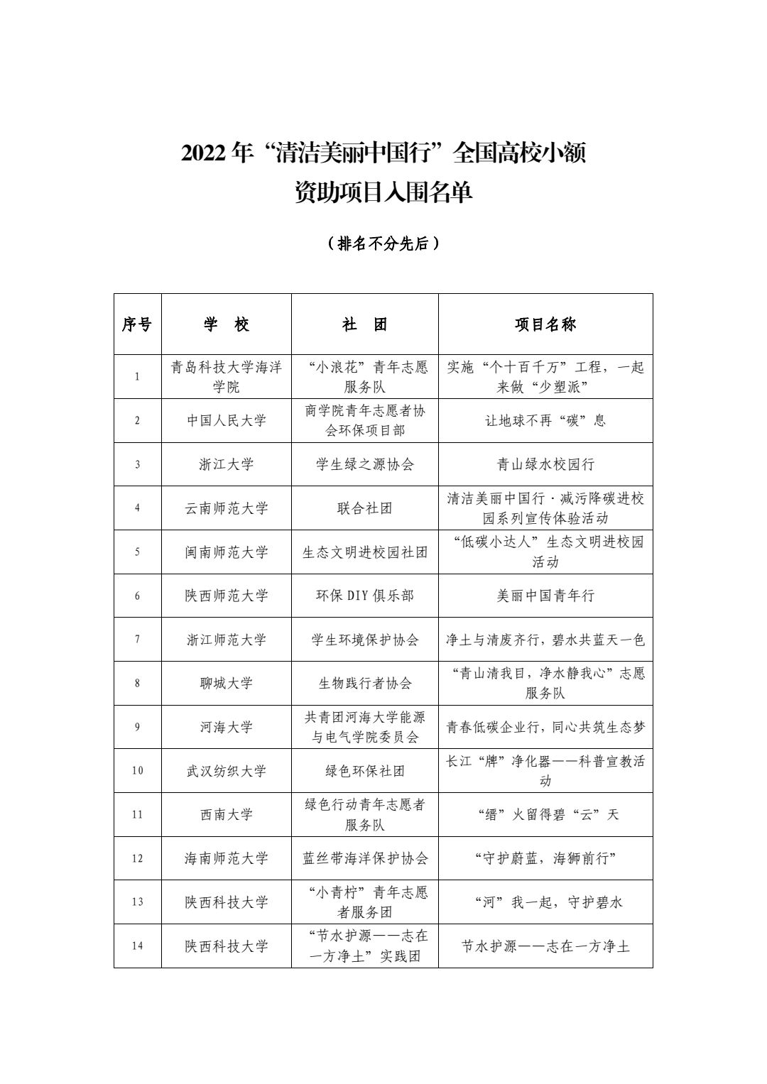【海洋荣誉】海洋公司入围2022“清洁美丽中国行”全国高校小额资助项目