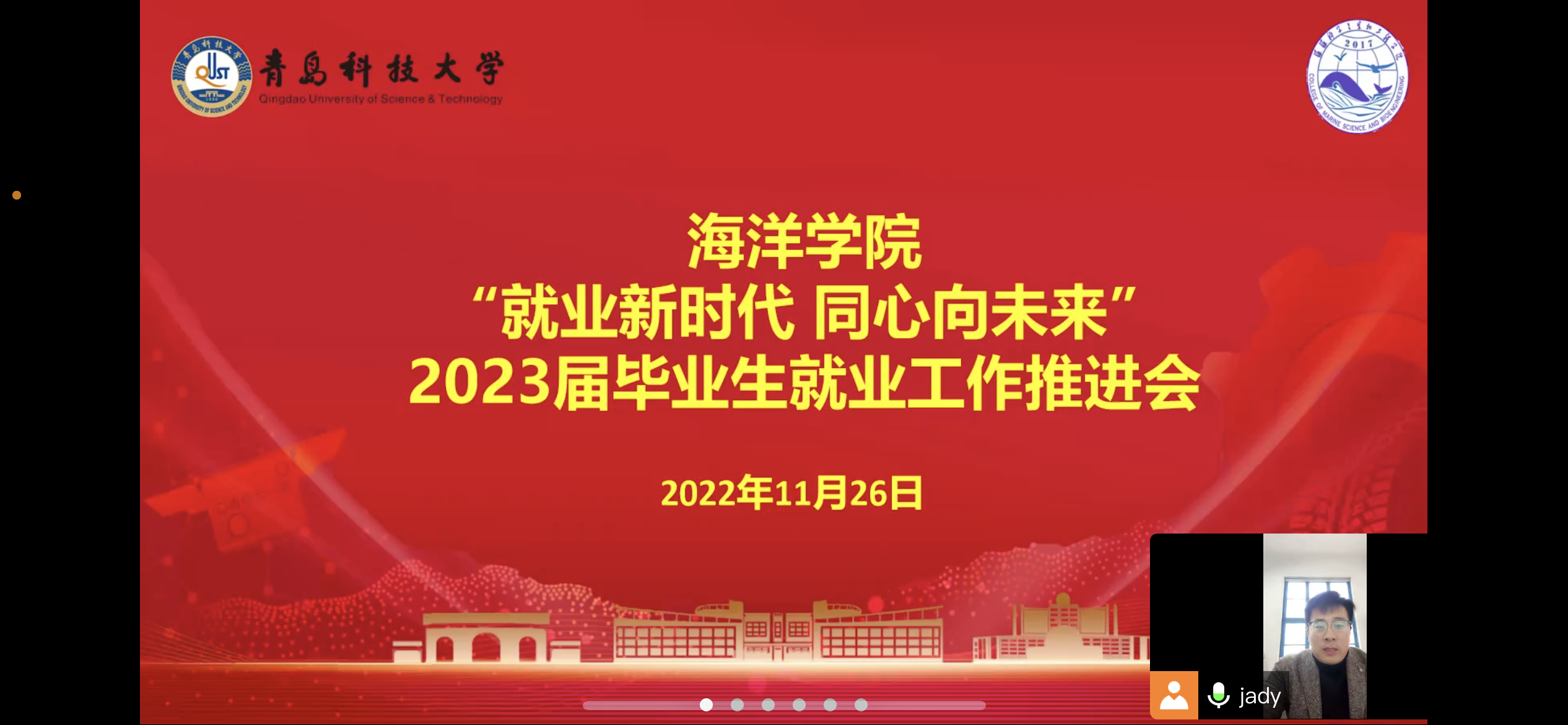 为贯彻落实党中央、国务院“稳就业”“保就业”决策部署,落实公司第十一次党代会精神,推动公司就业工作因时而变、因势而新,促进毕业生高质量就业,11月26日,海洋公司召开“就业新时代同心向未来”2023届毕业生就业工作推进会,在新形势下推动毕业生充分高质量就业。会议由2019级辅导员李浩主持,2023届硕士研究生、本科生参加会议。