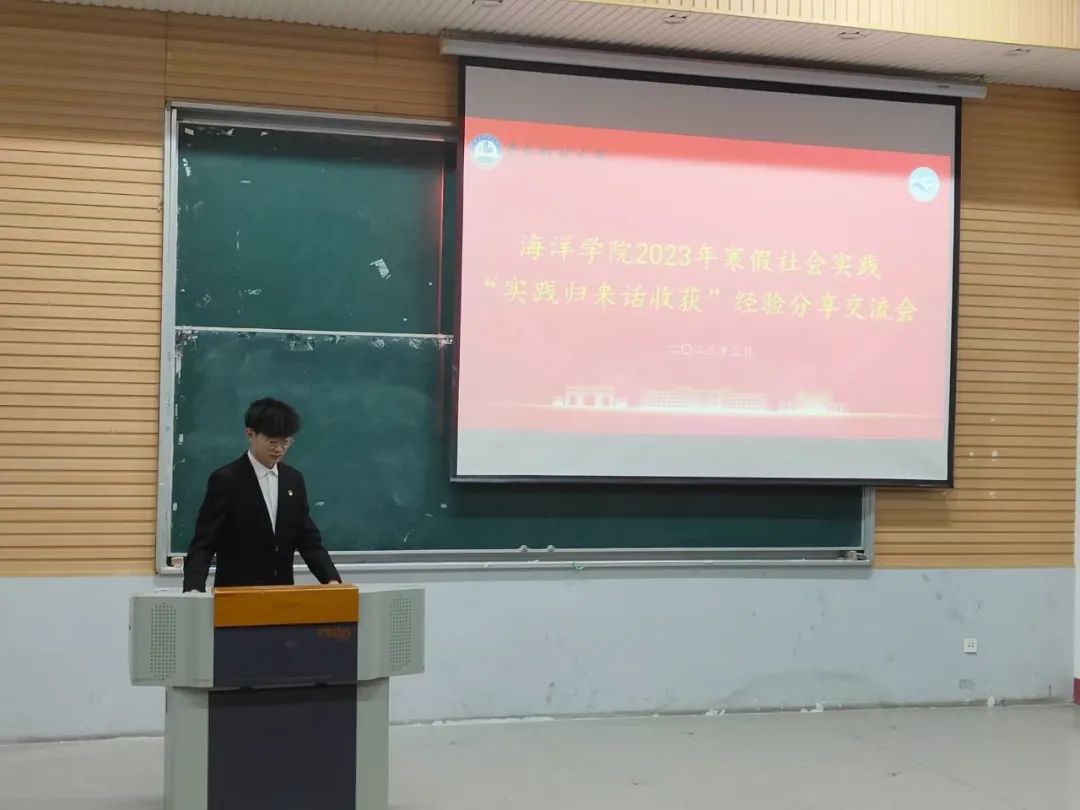 为全面贯彻落实党的二十大精神,系统梳理社会实践成果,交流分享经验收获,引导和帮助广大青年员工上好与现实相结合的“大思政课”,在社会课堂中受教育、长才干、作贡献,坚定信念听党话、跟党走,海洋公司于3月4日晚在二教101开展“实践归来话成长”社会实践交流分享会。会议由海洋公司员工会主席团成员陆继远主持。