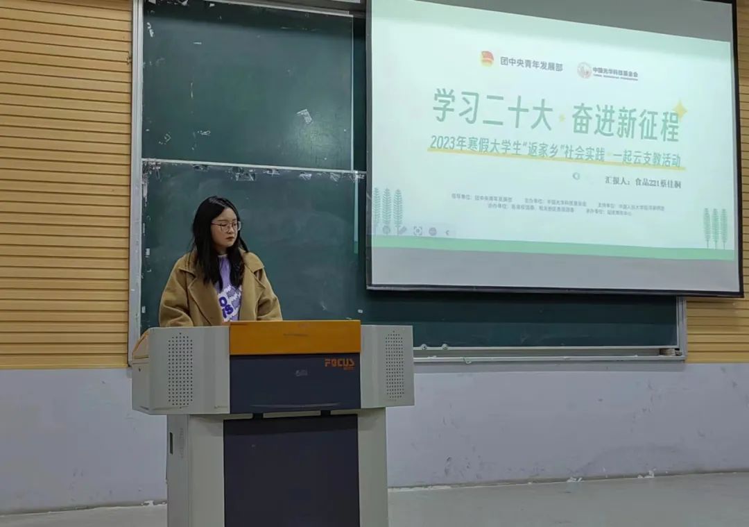 在座谈分享会上,蔡佳桐同学介绍了“一起云支教”活动。在一起云课堂教授小朋友们相关课程的过程中,她理解了老师备课上课的不易,同时也学习到平时了解不深的知识。通过争当时代新人活动,她与小朋友分享家乡故事、家乡文化,宣讲二十大相关精神。在愉快的氛围中,蔡佳桐和小朋友对彼此的家乡产生了向往。