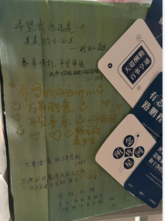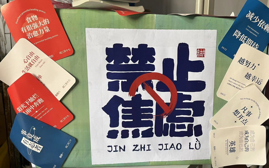 活动现场,同学们在便签上写下自己的焦虑或烦恼,将便签贴在心理展板上,然后从心理展板旁的安慰盲盒随机抽取一张已写好的鼓励便签,并再次写下一张新的鼓励话语的便签投到安慰盲盒中进行循环。同学们将心中的忧虑与烦恼排解而出,并将鼓励便签与他人交换,让同学感受到陌生人的温暖,感受到前进的路上有更多的陪伴。