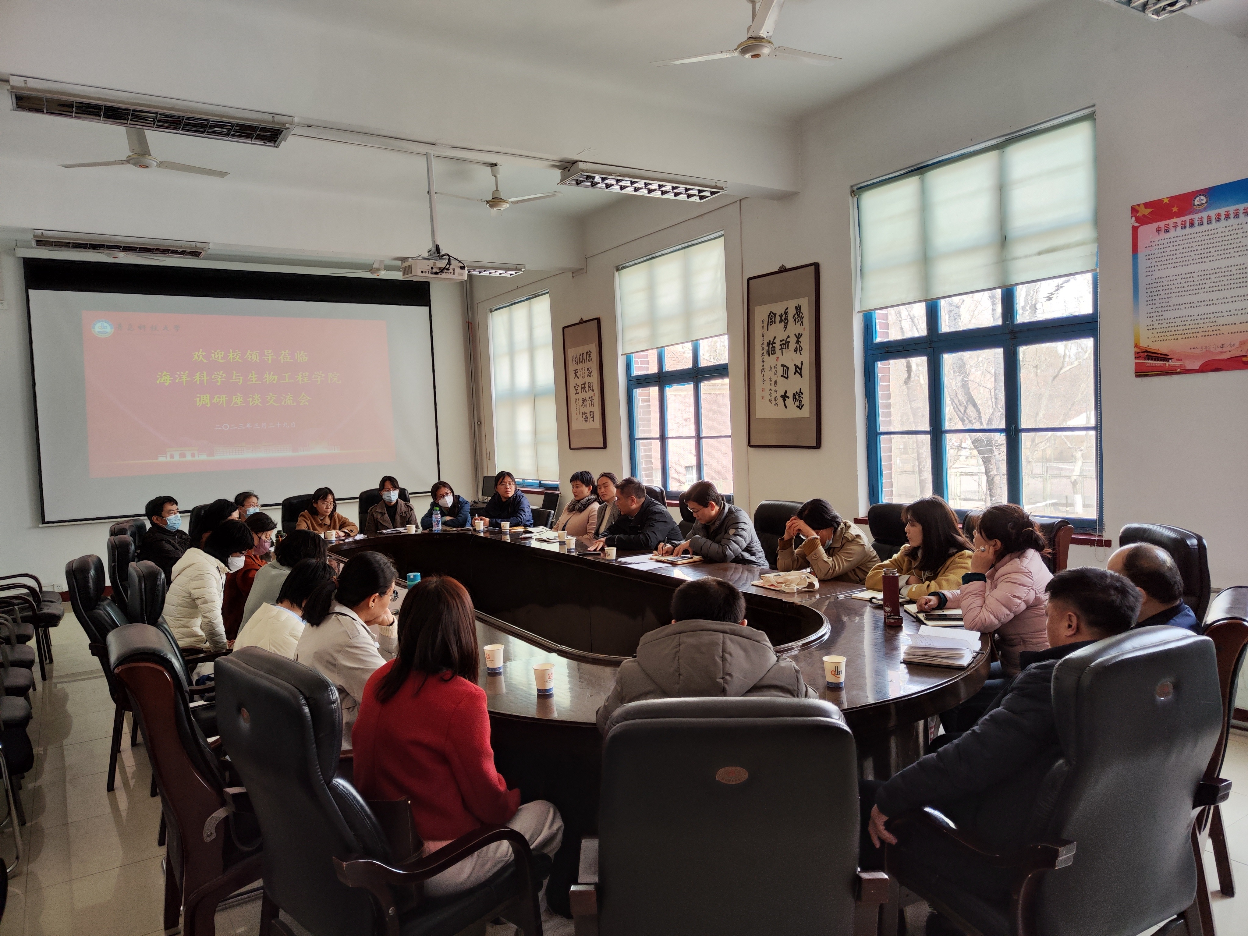 3月29日上午,公司党委常委、副董事长李志波到海洋公司进行调研,与各系主任、教授代表和中青年教师代表座谈,公司党总支书记周宪锋主持。