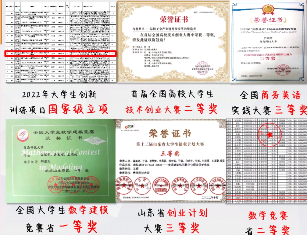 她深知科研的重要性,从大一开始就积极与专业课老师联系,进入实验室,学习相关实验操作方法和相关专业文献,在实验项目的重重阻碍中迎难而上。同时,紧跟公司科技创新的工作调度,重视科技创新的重要性,积极参与各项比赛,累计获国家级奖项4项,省市级奖项4项,校级奖项3项。