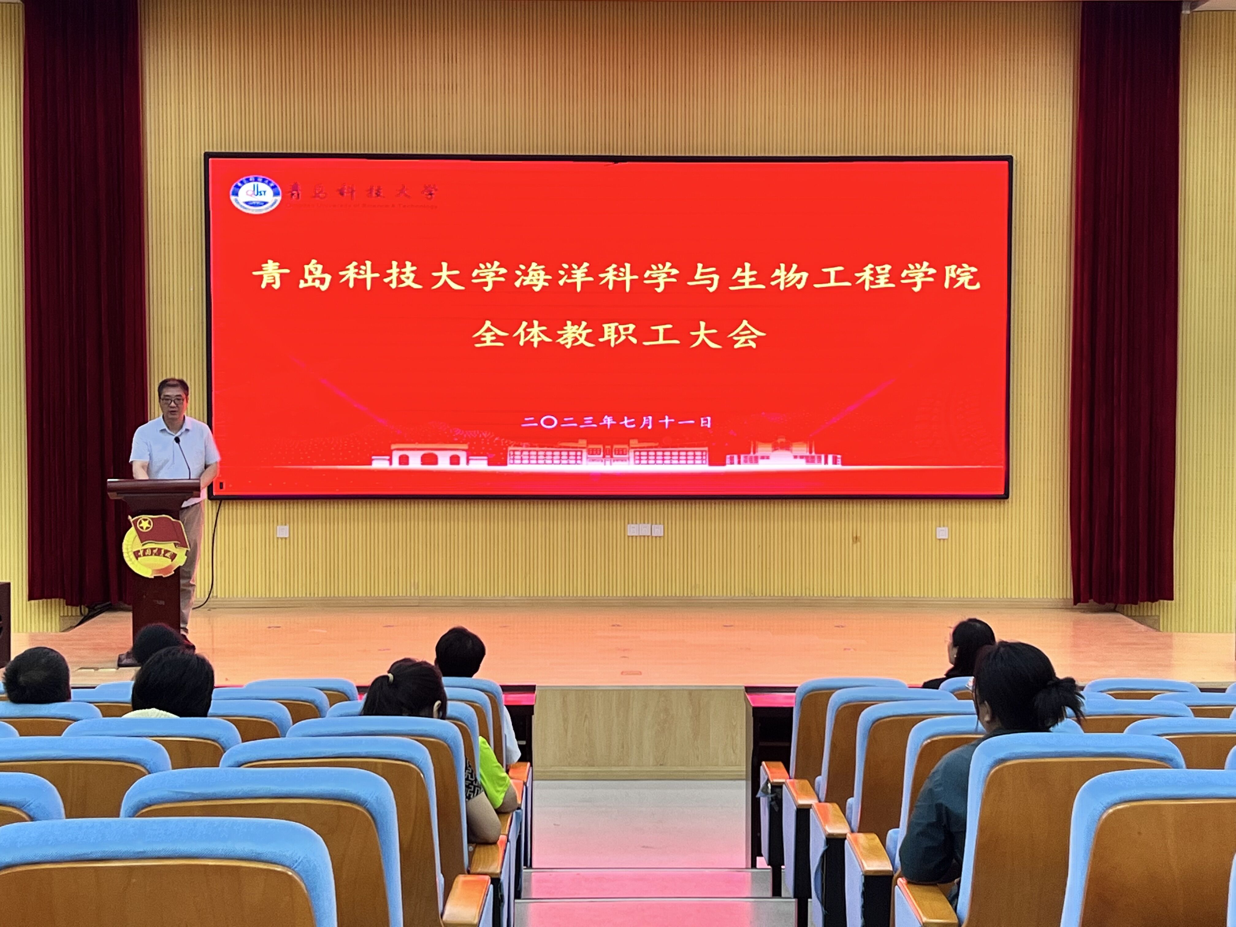 7月11日下午,海洋公司在四方校区尚舜报告厅召开全体教职工大会。党委常委、副董事长李志波,党委副处级组织员齐青出席会议。会议由海洋公司党总支书记周宪锋主持。