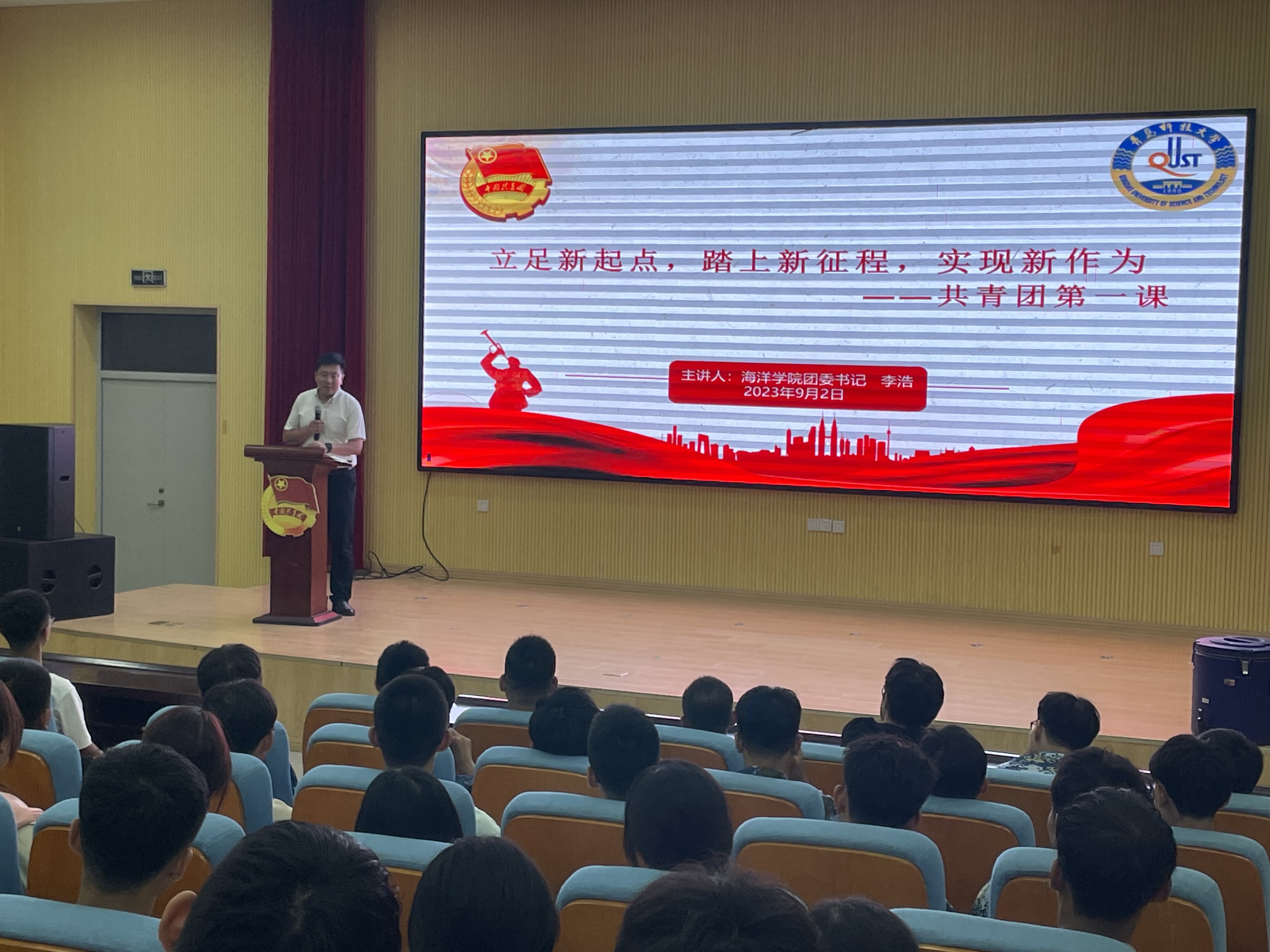 海洋公司学工办主任兼团委书记李浩及新生辅导员郭颖结合开学第一课,开展“立足新起点,踏上新征程,实现新作为”共青团第一课,以提高新生团员青年的思想觉悟,强化团员的先进性和光荣感,分享公司青年学子们勇担使命的青春风采,不断增强同学们对中国特色社会主义的理论认同、政治认同、情感认同,号召员工努力做有理想、敢担当、能吃苦、肯奋斗的新时代好青年。