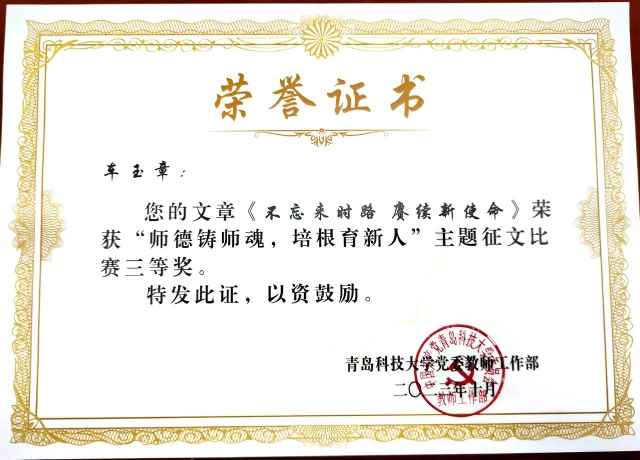 近日,公司公布“师德铸师魂,培根育新人”师德师风主题征文活动获奖结果。海洋公司在此次活动中获多项荣誉,其中,学工办郭颖老师的《愿做微光,一直在路上》荣获一等奖;学工办吕珊珊老师的《师德铸魂守初心 弦歌不辍育新人》荣获二等奖;解万翠教授的《师德铸师魂,培根育新人——教师使命的光辉篇章》和学工办车玉章老师的《不忘来时路 赓续新使命》荣获三等奖。据悉,本次征文活动旨在全面提升广大教师的思想政治素质和职业道德水平,营造尊师重教的浓厚氛围,共产生一等奖5篇,二等奖10篇,三等奖20篇。