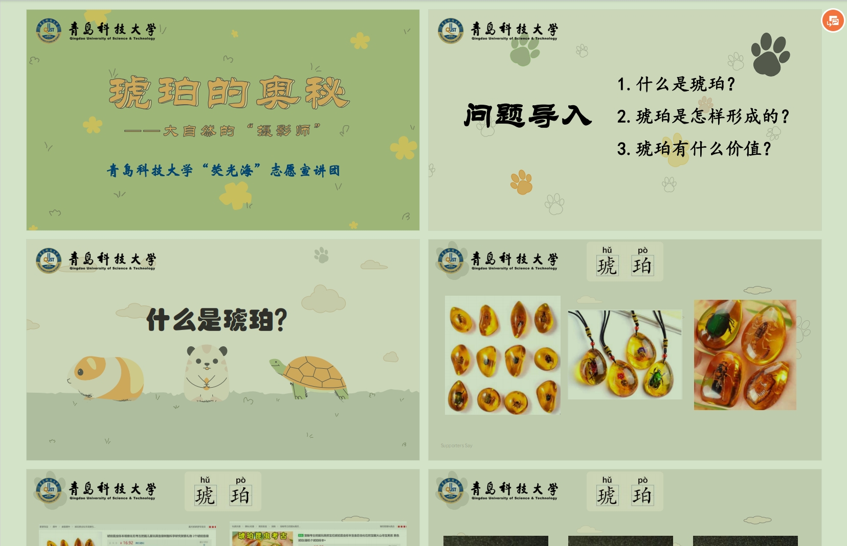 在设计课程的基础上,实践团制作琥珀周边,通过制作胸针、茶杯等样品,实践团对琥珀制品的认识。同时,在课堂中亦采用“现场制作”的形式进行授课,通过寓教于乐的教学方式,极大地提升社区员工的学习兴趣和参与度。