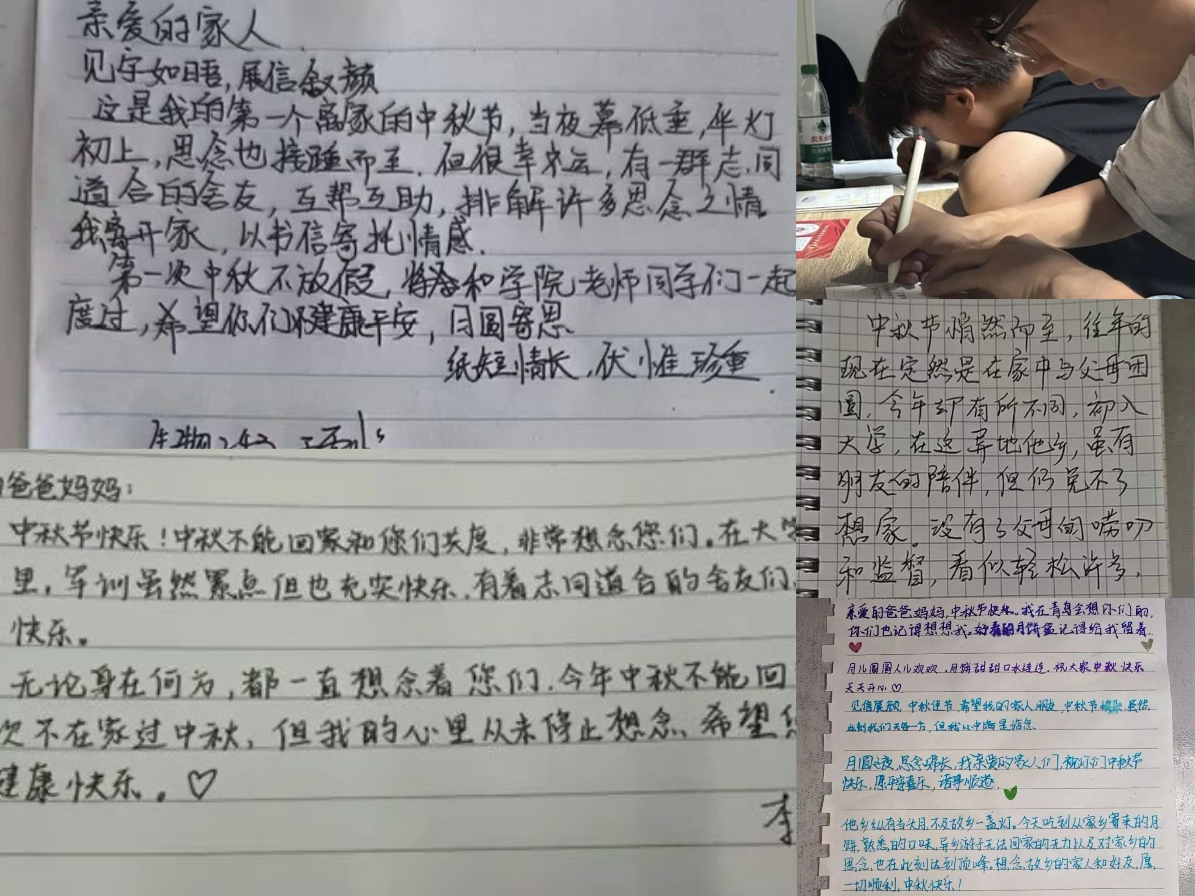 相思寄鸿雁·书信寄情。独在异乡为异客,每逢佳节倍思亲。今年的中秋佳节,同学们第一次远离家乡和父母,在大公司园过节,更加思念家人。大家坐在一起,每人几张信纸、一支笔,写出心中对亲人和故乡的思念。