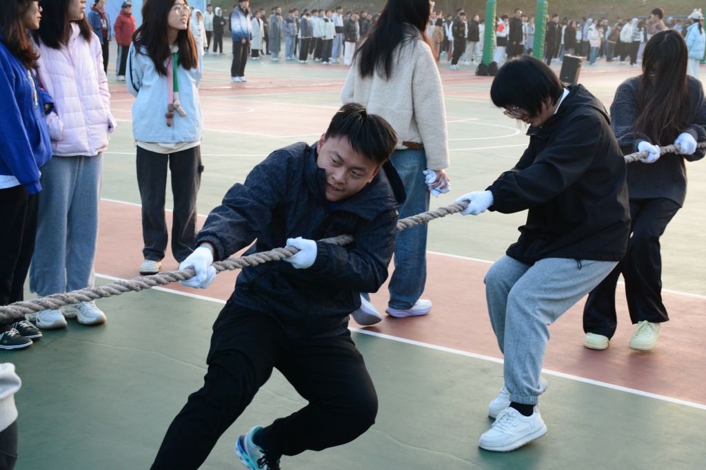 本次比赛吸引了2024级广大团员青年参与,比赛共有十五支队伍,同学们齐心协力,为自己的队伍全力以赴。随着比赛的开始各个队伍按照提前安排好的比赛顺序开始进行拔河比赛,同学们相互配合、共同发力,将合作精神展现得淋漓尽致。这种齐心协力的精神将团队凝聚成一股强大的力量,推动着他们向着胜利的目标不断前进。