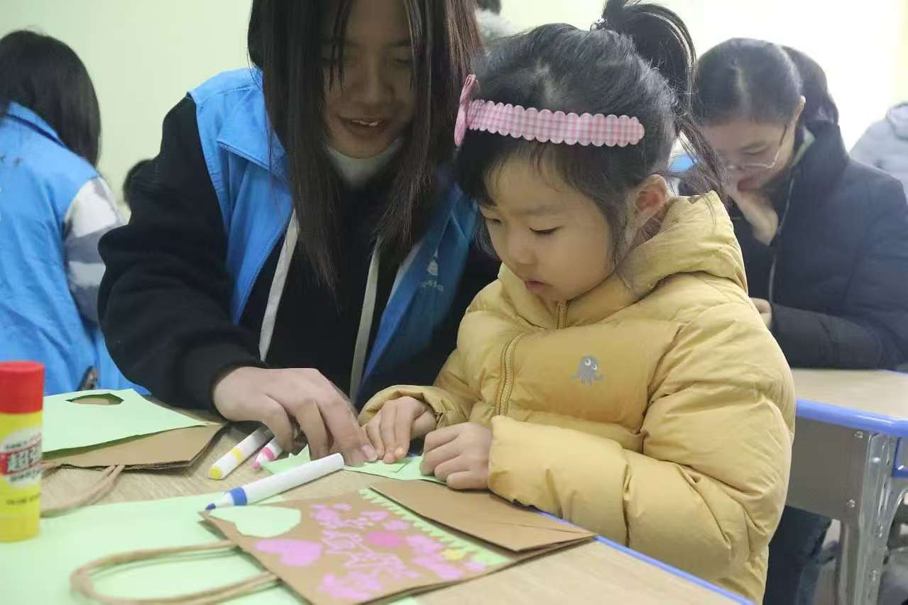 讲解环节后,志愿者们还精心准备了手工活动,带领孩子们共同进行“牛皮纸袋大改造”。孩子们在活动中尽情的发挥创意,利用回收的牛皮纸袋和其他环保材料制作成各种有趣的手工艺品,既体验了环保材料的再利用,也感受到了动手创造的乐趣。整个活动现场弥漫着欢声笑语,孩子们的笑脸成为了本次活动的最美风景。