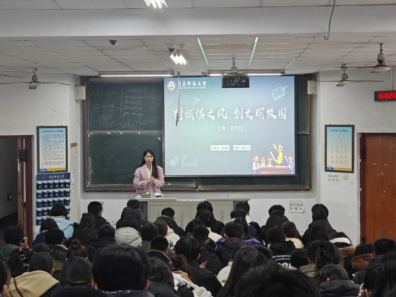 为端正考风考纪,加强学风建设,号召同学们在期末考试中自觉遵守道德规范,营造文明诚信考试的良好氛围,12月24日下午,betway西汉姆联官方官网在一教103举办了“树诚信之风,创文明校园”的主题教育大会,会议由辅导员刘金岭主持,2024级全体员工参加。