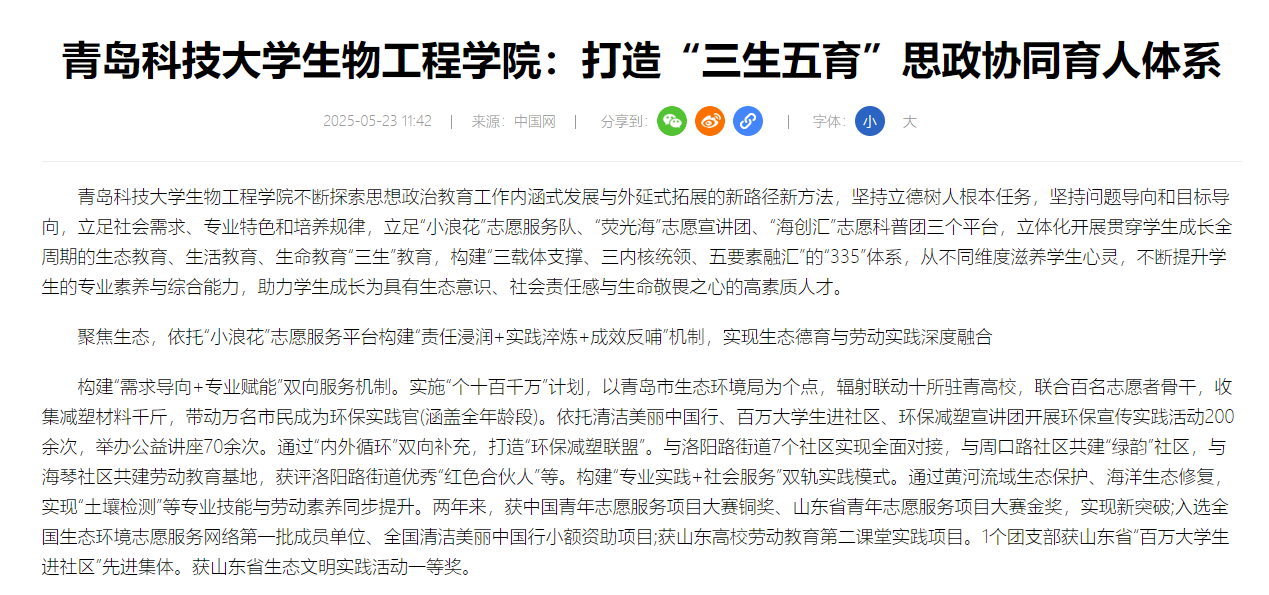 【中国网】betway西汉姆联官方官网:打造“三生五育”思政协同育人体系