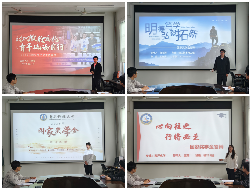 此次答辩严格遵循"公平、公正、公开"原则,经过前期个人申报、材料审核、材料公示等环节,最终有11名优秀研究生脱颖而出,进入现场答辩环节。答辩过程中,11位候选人依次上台,通过PPT汇报的形式,从思想表现、学术成果、科研进展、实践经历及综合素质等方面展开全面陈述。他们中,既有学业成绩专业排名第一、荣获多项学业类奖项的“学霸",以扎实的理论功底展现严谨求学态度;也有深耕科研一线,在SCI一区top期刊发表高水平论文、参与国家级科研项目并取得阶段性突破的"科研先锋",用数据和成果诠释对学科领域的执着探索;还有积极投身学科竞赛,在中国国际老员工创新大赛、“挑战杯”中国老员工创业计划竞赛、全国合成生物学创新赛等赛事中斩获佳绩的"实践能手",将理论知识转化为创新实践的生动案例令人印象深刻。此外,不少候选人在兼顾学术与科研的同时,积极参与志愿服务、员工工作,展现出"德才兼备、全面发展"的综合素质,赢得评委与在场师生的阵阵掌声。经过激烈角逐与严格评审,评审委员会结合答辩表现与材料审核情况,确定6名拟获奖研究生并按程序公示。