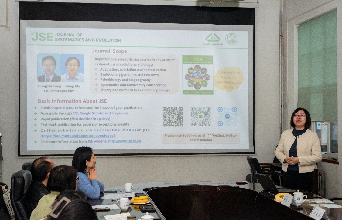 随后,中国科公司植物研究所副编审、《Journal of Systematics and Evolution》(JSE)编辑部主任谭京晶博士带来题为《洞悉期刊发展,提升发表效能:JSE 的改革实践及其对青年学者投稿的启示》的报告。她重点分享了 JSE引领学科发展的改革实践,并从编辑与编委的角度针对青年学者投稿过程中常见的格式规范、语言表达、审稿意见回应等问题提供了实用建议。