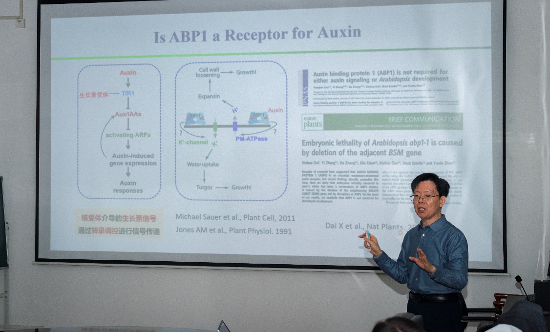 本期沙龙邀请两位资深学者带来精彩分享,围绕植物生长调控的分子机制与学术期刊发展的实践路径两大核心议题展开深入探讨。“万人计划领军人才”、国家“优秀青年科学基金”获得者,来自山东大学的丁兆军教授以《生长素调控植物根的生长发育与生长反应》为题作报告,系统阐述了生长素作为关键调控因子,在植物根发育、干细胞维持、逆境响应中的核心作用,引发了在场师生对植物发育生物学前沿问题的广泛思考。