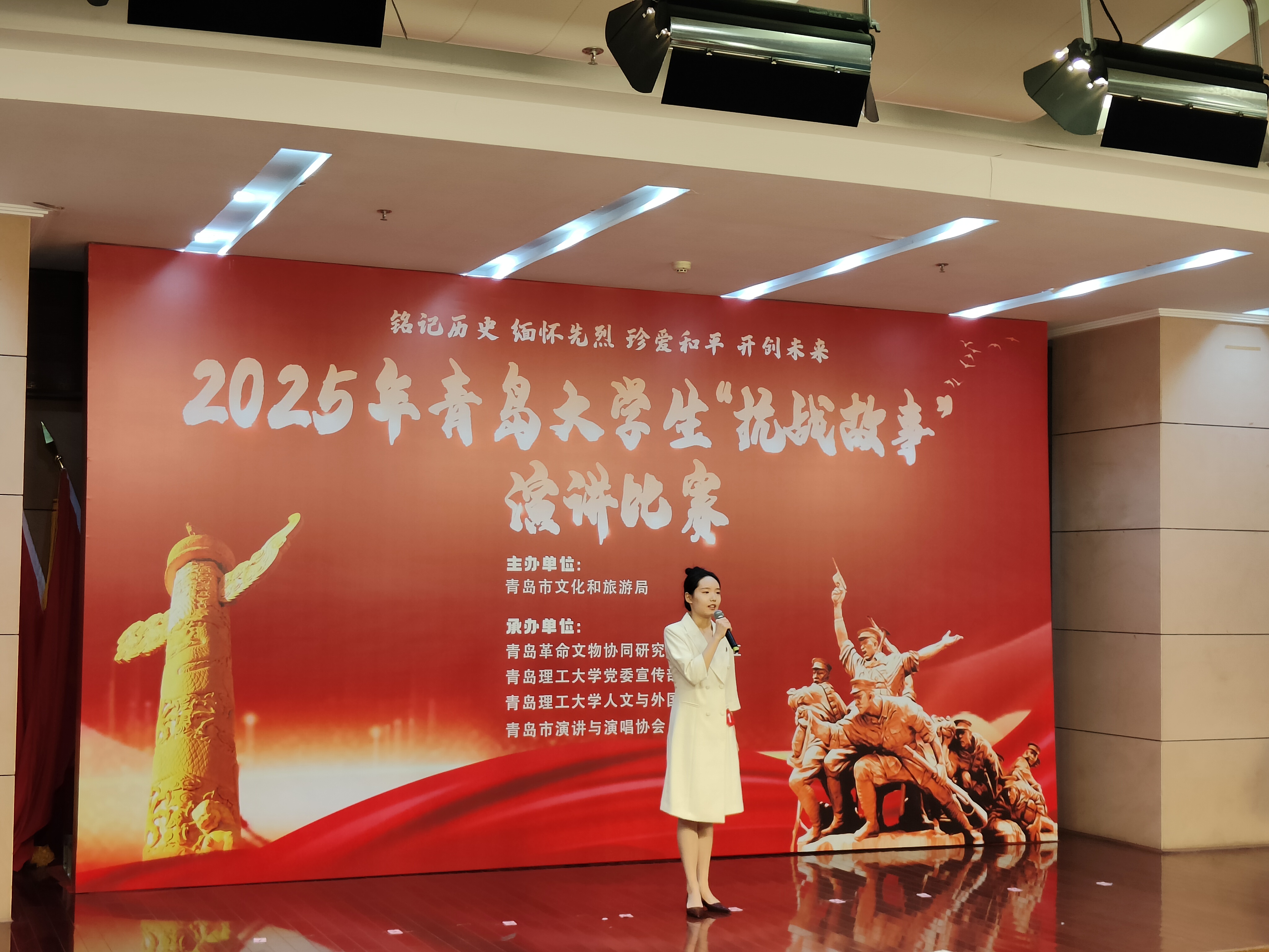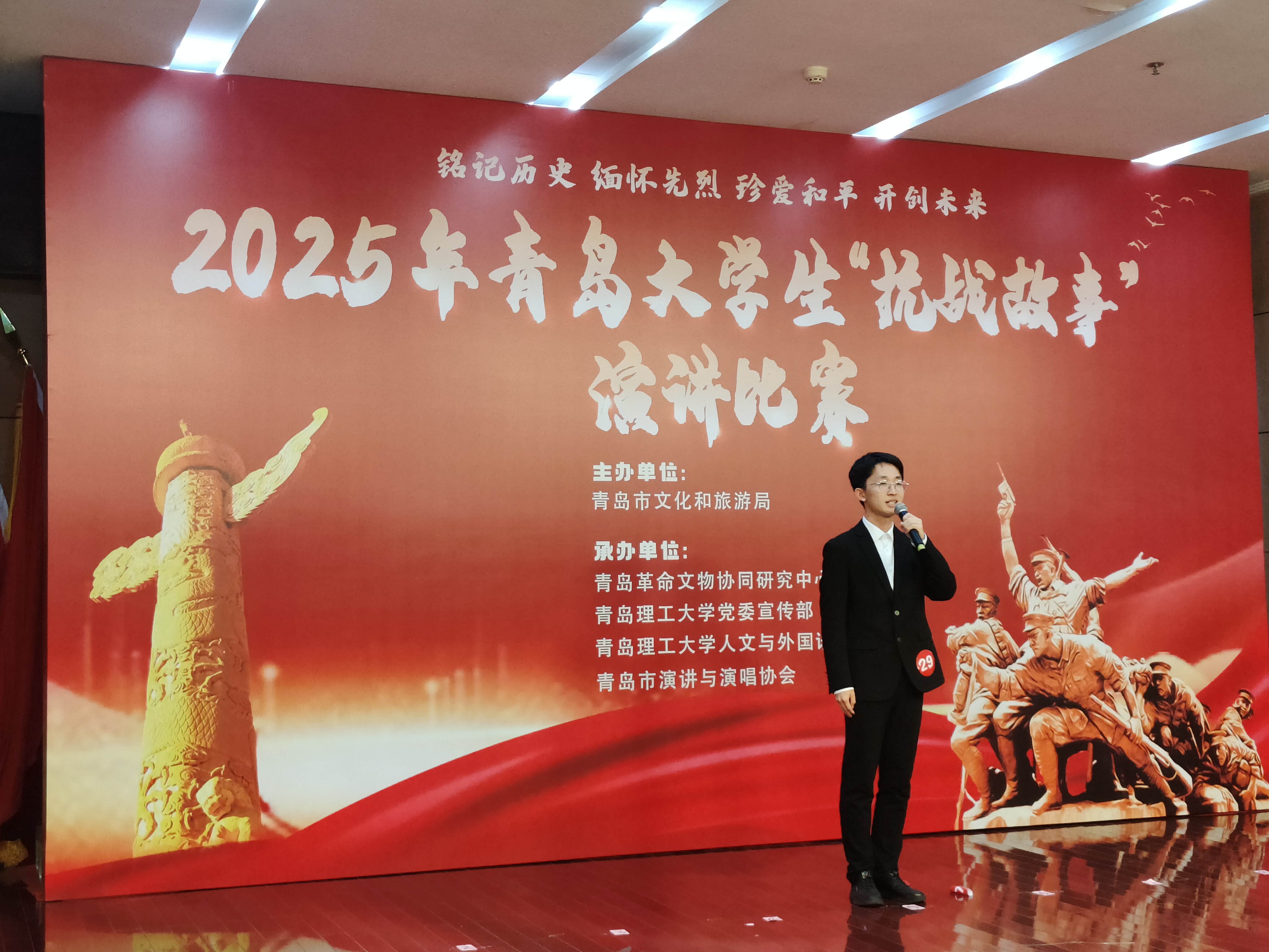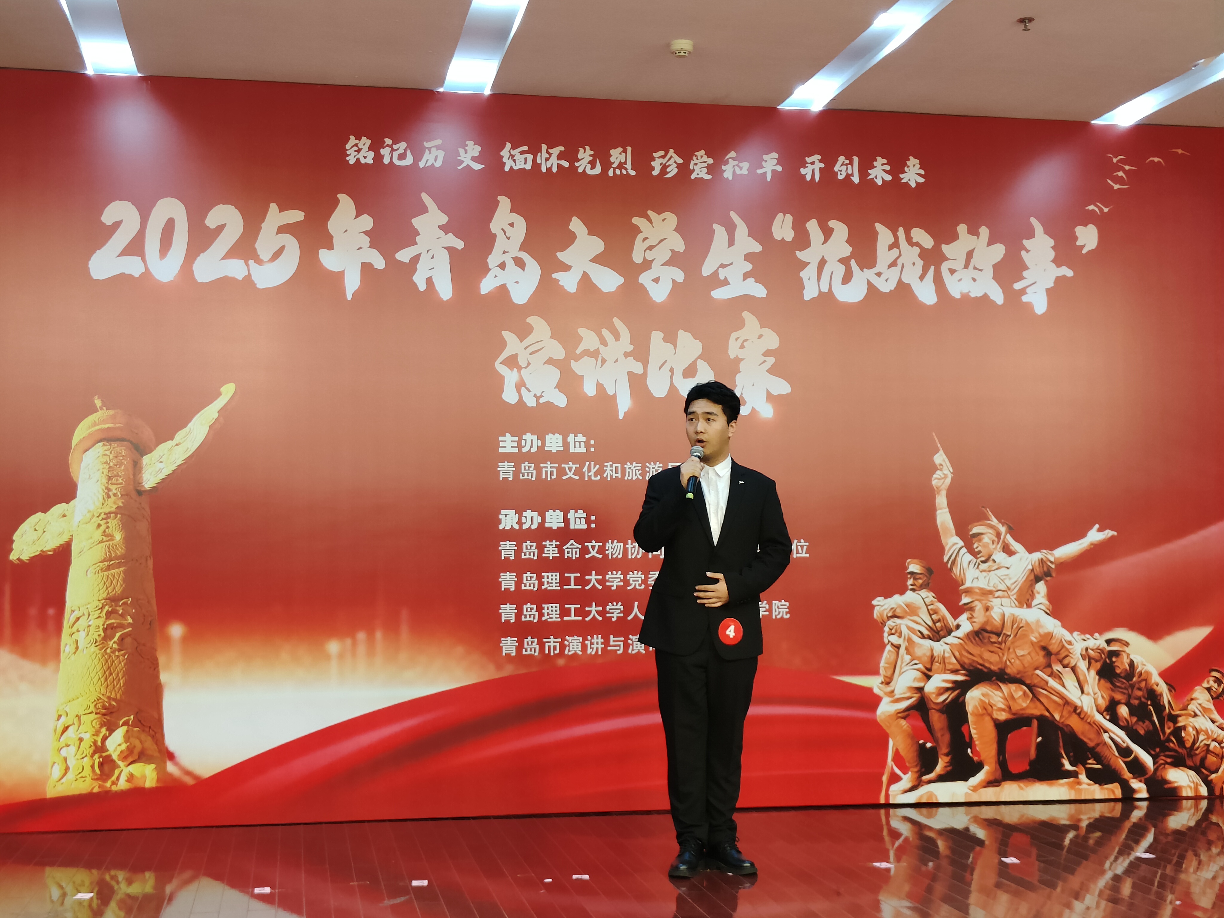 本次演讲比赛分为初赛和决赛两个阶段,吸引了青岛多所高校员工积极参与。比赛中,选手们围绕抗战历史主题,深情讲述一个个感人至深的故事,充分展现了新时代青年铭记历史、奋发向上的精神风貌。