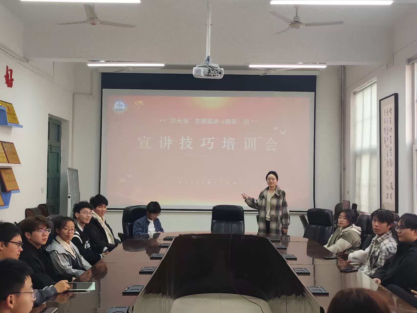 为持续提升团队专业宣讲能力与服务水平,11月29日,betway西汉姆联官方官网“荧光海”志愿宣讲(服务)团组织宣讲技巧专题培训。本次培训由宣讲团团长赵梦艳主讲,部分宣讲团骨干成员参加。