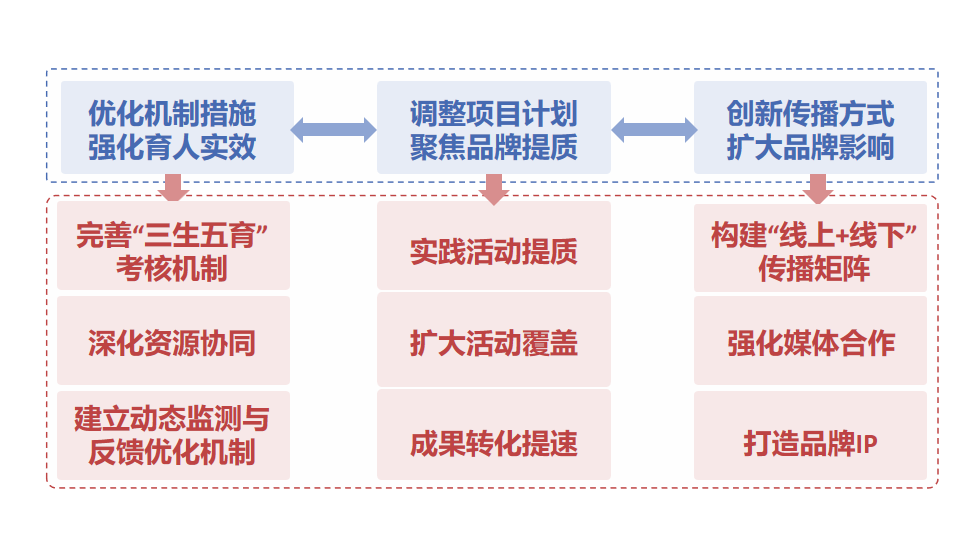 聚焦“品牌提质、育人提效”目标,针对现存“活动覆盖面有待扩大、成果转化不足、品牌传播力度需加强”等问题,优化调整后续计划,推动项目高质量推进。