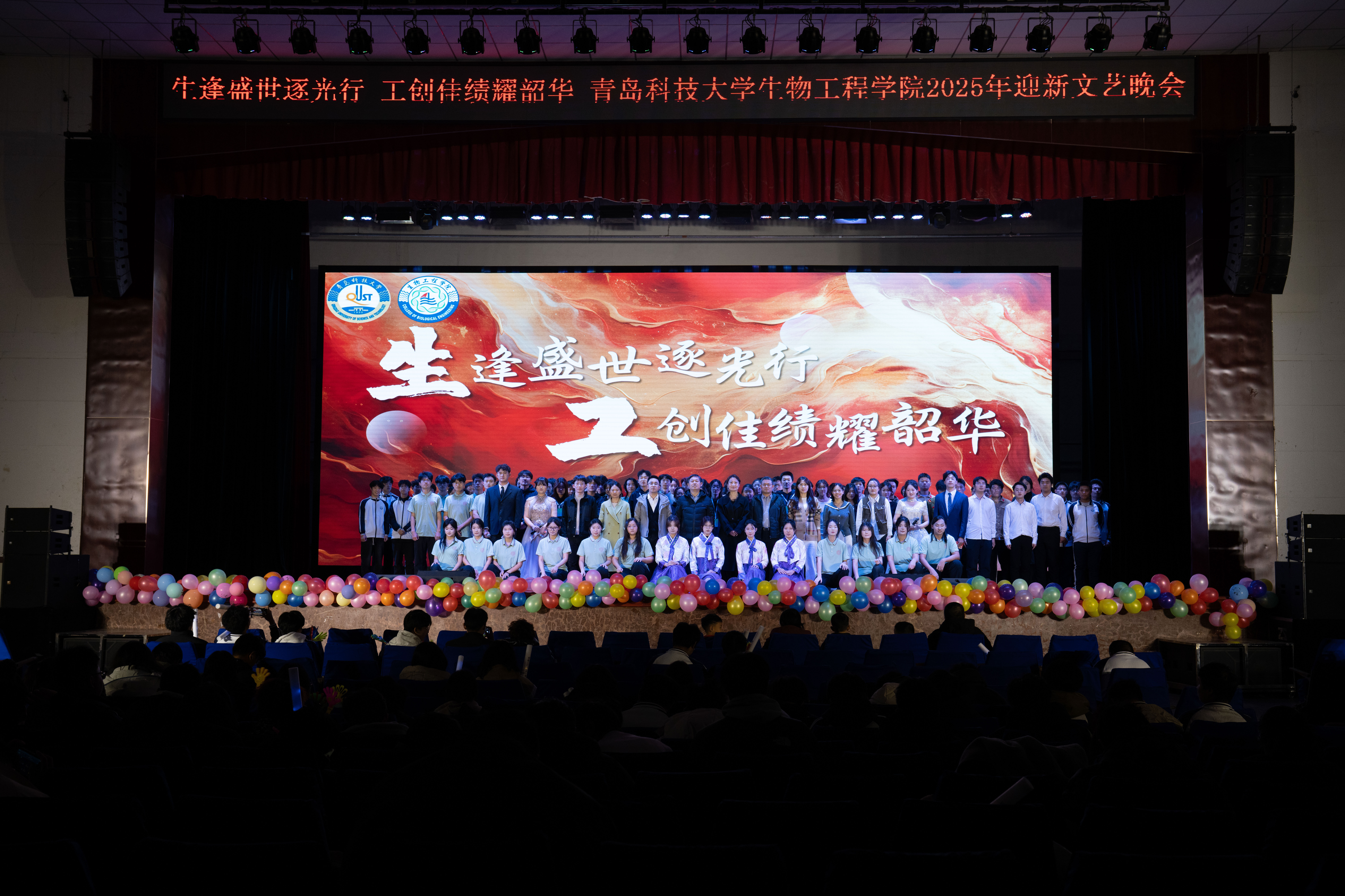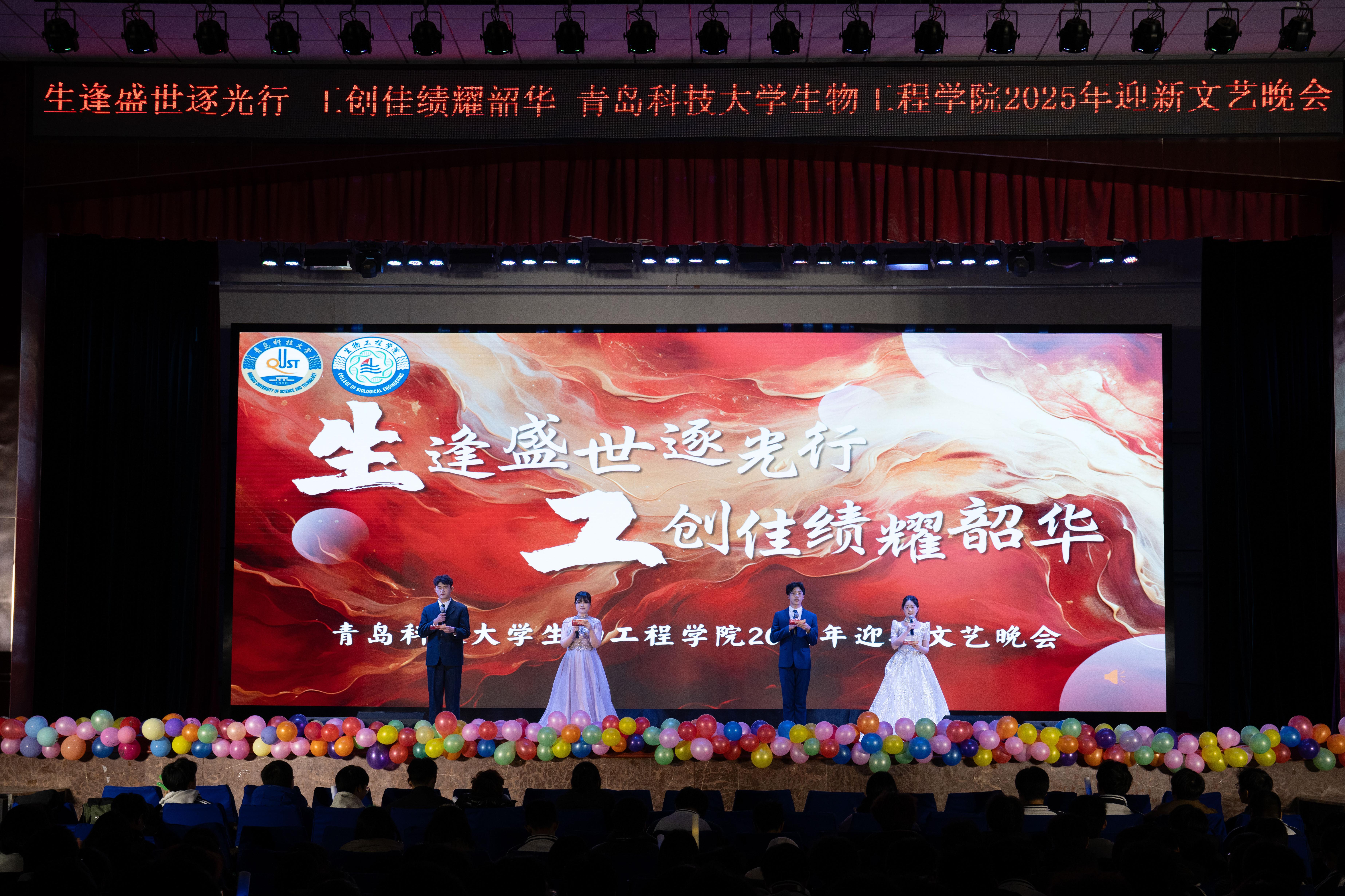 本次晚会以“生逢盛世逐光行 ,工创佳绩耀韶华”为主题,分为《烽火淬砺启新程》《风雅流转颂华章》《青春同心向未来》三个篇章。不仅彰显了生工学子昂扬向上的精神风貌、深厚的家国担当,更传递出新时代青年逐光而行、笃行不怠的奋进姿态。