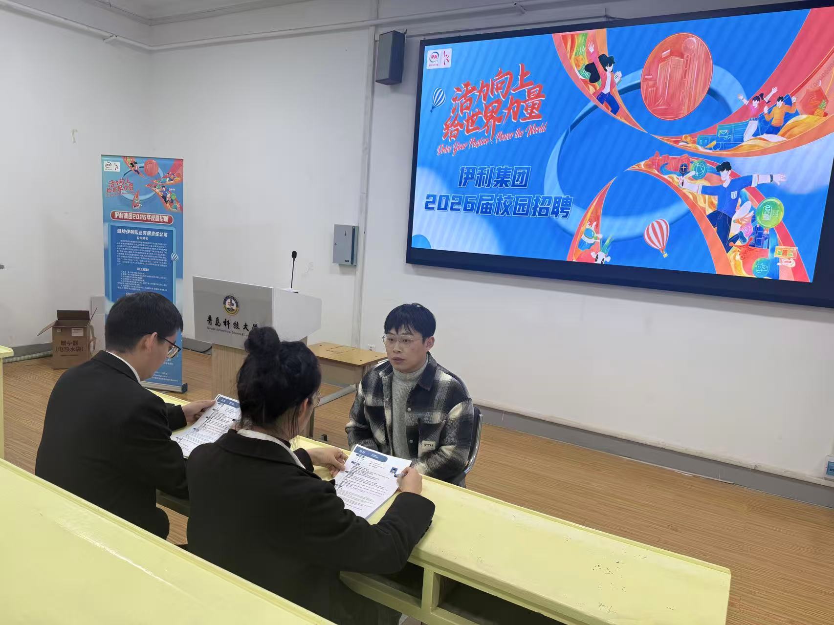 在本次招聘会上,伊利集团全方位、多维度地向同学们展示集团的辉煌发展历程、独特的企业文化、多元的业务板块以及宏伟的未来发展战略蓝图,并邀请伊利集团不同岗位专家详细介绍了各岗位职能。此外,针对同学们最为关注的招聘岗位详情、职业晋升路径以及优厚的薪酬福利体系等关键问题,企业代表也进行了详尽且深入的剖析与解读,力求让每一位参会同学都能清晰了解伊利集团所能提供的广阔职业发展空间。